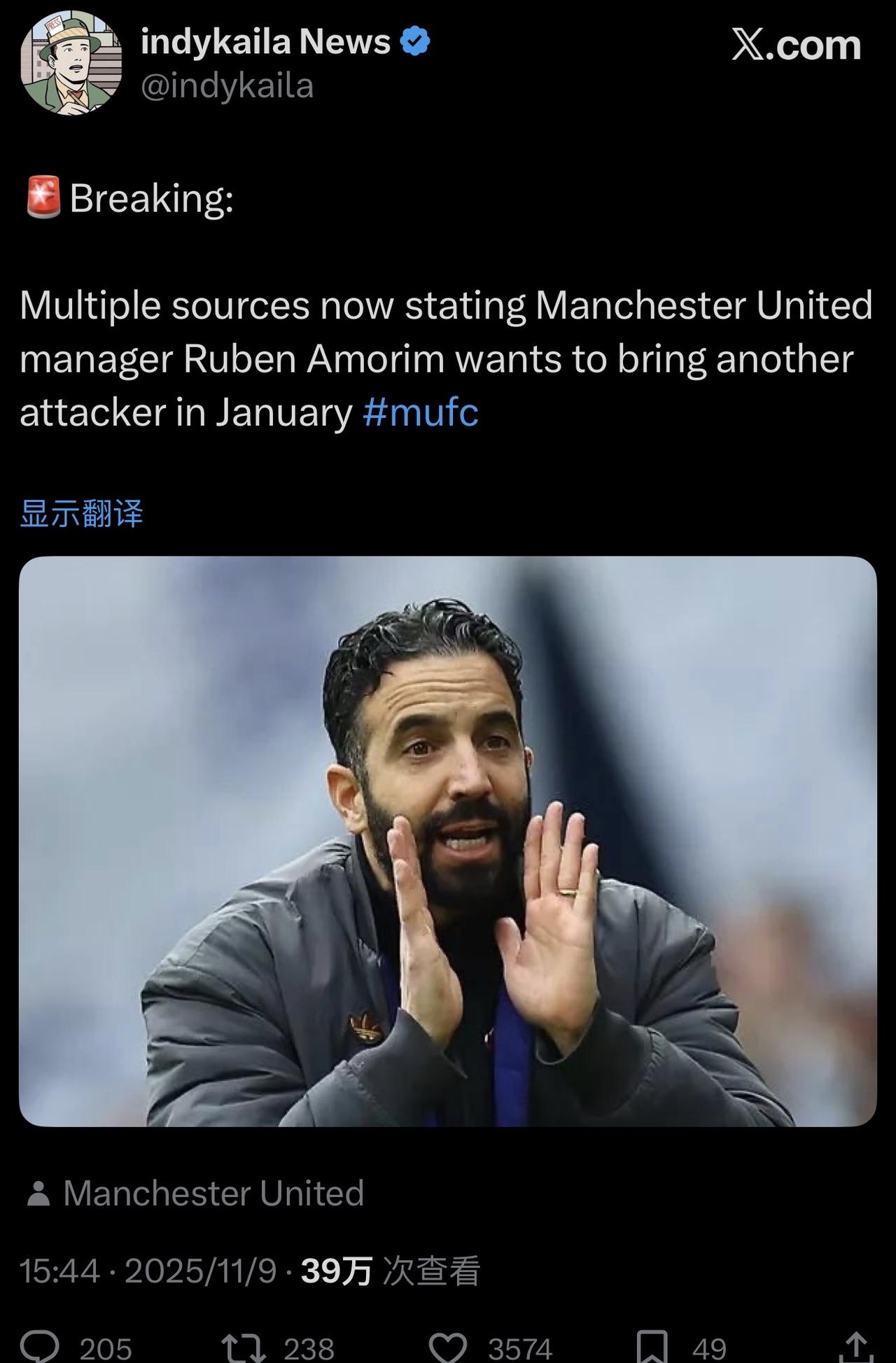 舍什科的膝伤被证实很严重,阿莫林可能会在一月份要求再买入一名前锋! 由于喀麦隆的布莱恩·姆贝莫和科特迪瓦的阿马德·迪亚洛将因参加非洲国家杯而缺席一段时间,球队阵容已经捉襟见肘。