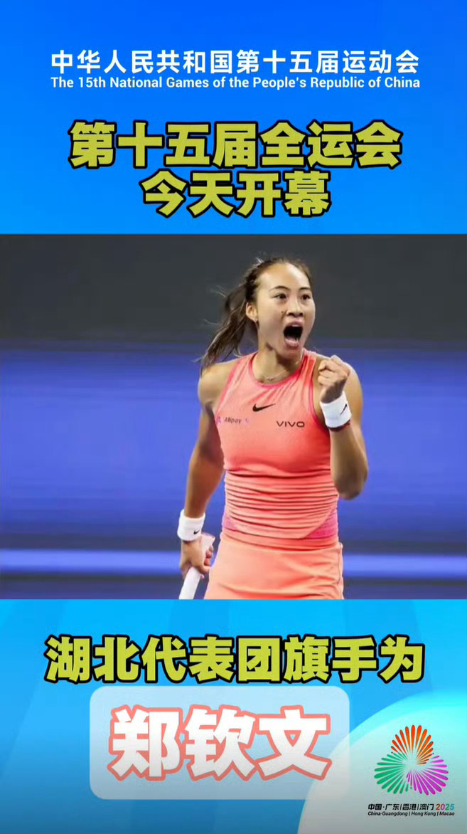 网球运动员郑钦文身穿巴黎奥运领奖服来到开幕式!郑钦文将担任湖北代表团旗手……