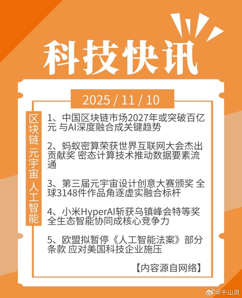 科技快讯|11月10日星期一1、中国区块链市场2027年或突破百亿元与A