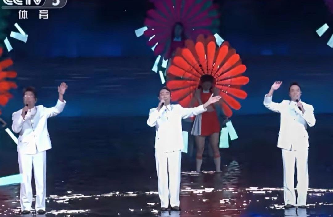 大湾区全运会开幕式陈小春, 谢天华, 林晓峰, 钱嘉乐穿着中山装一起共同献唱《海阔天空》。