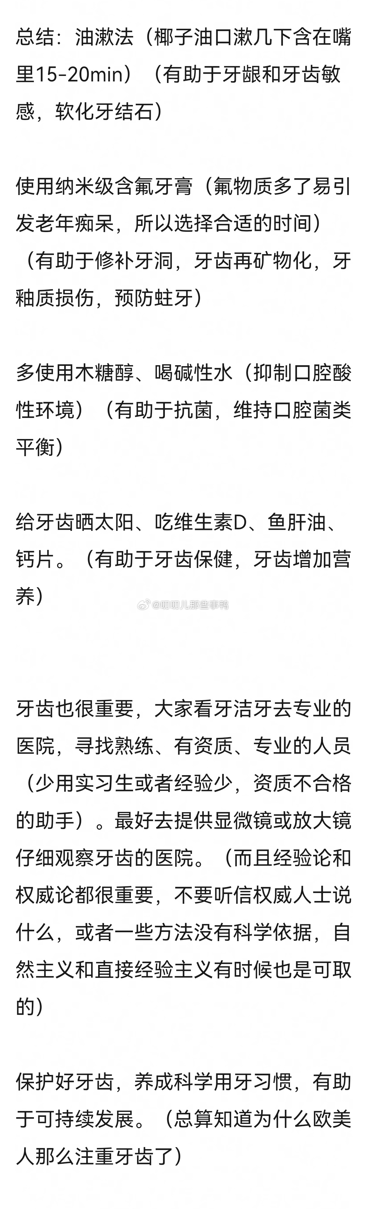 搬,这个帖子写的很好,码住了→这是一篇关于牙齿保护的帖子,特别适合于牙齿有损伤的人,或者预防牙齿损伤的人~[春游家族][春游家族]