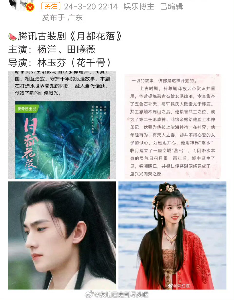 月都花落 之前死磕的一直是杨洋,编剧都是铁血羊毛,羊毛老师最后奋起反对接这部杨洋才放弃的。