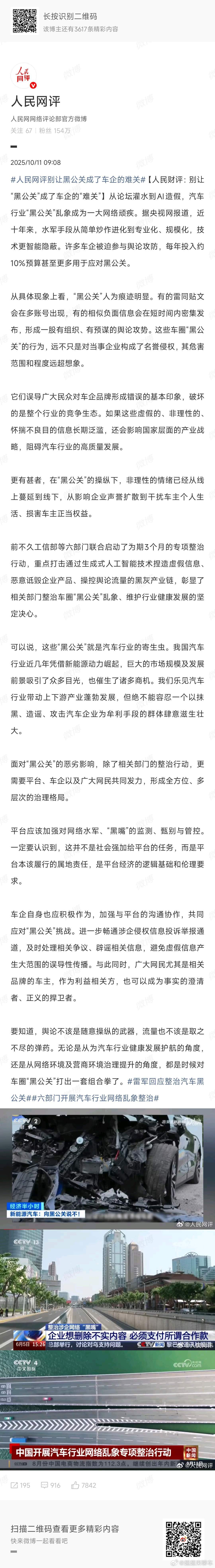 网民造谣理想汽车充劣质电自燃被抓人民网评:别让“黑公关”成了车企的“难关”。