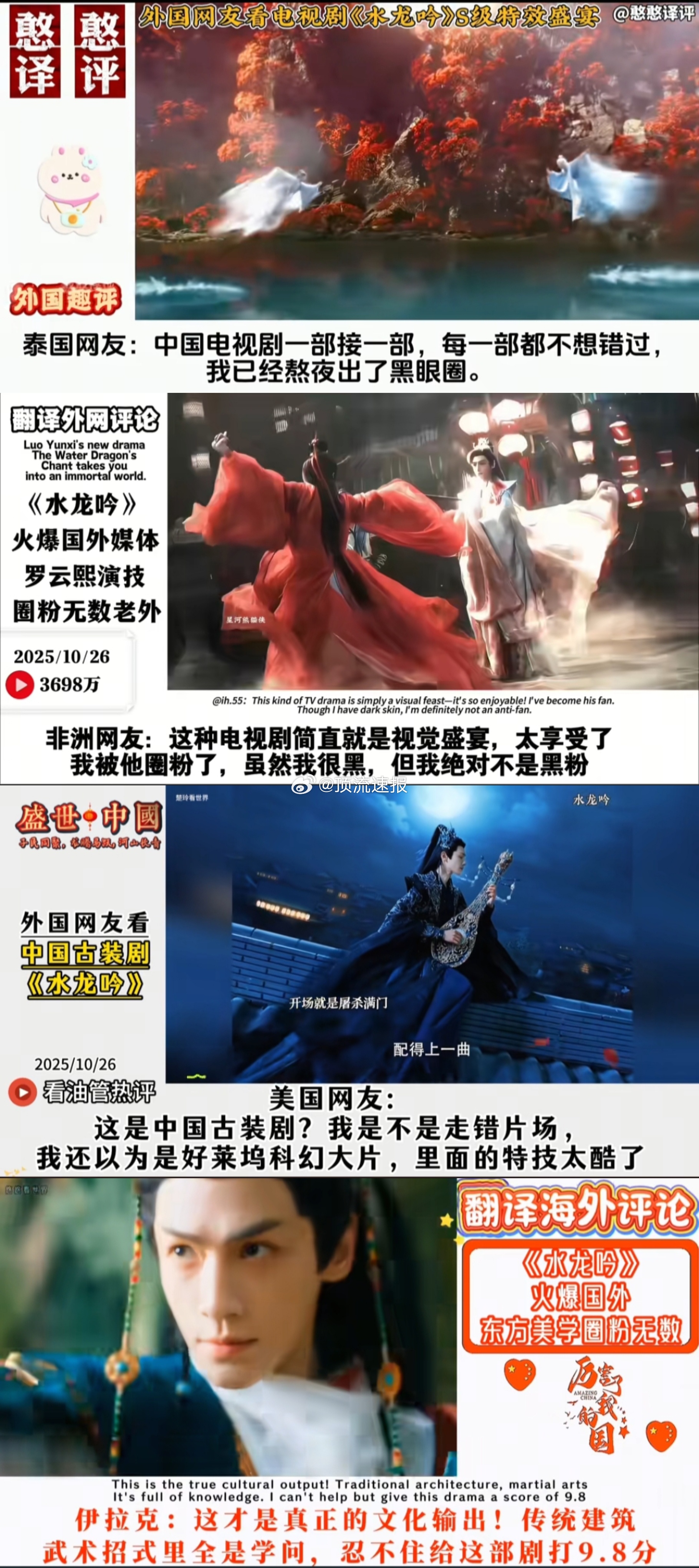 水龙吟海外口碑水龙吟 这波国产剧抗剧实力赢麻了!用绝美的文化底蕴和高燃的打戏,在120+国家23平台同步霸榜,海外观众集体热评:“满是东方学问”、“这才是真江湖”、“罗云熙月下画面是活的东方美学”!真不愧是“出海标杆剧”,继续让全世界追这个唐俪辞吧!!! ​​​