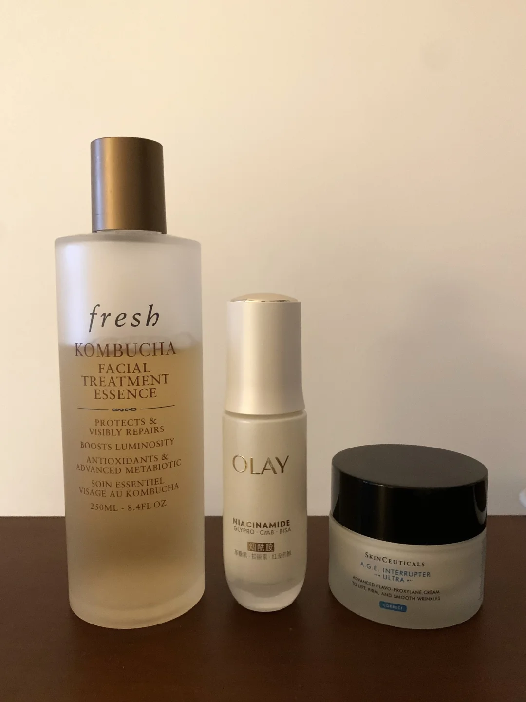 fresh红茶水+OLAY水光小白瓶+修丽可age面霜
