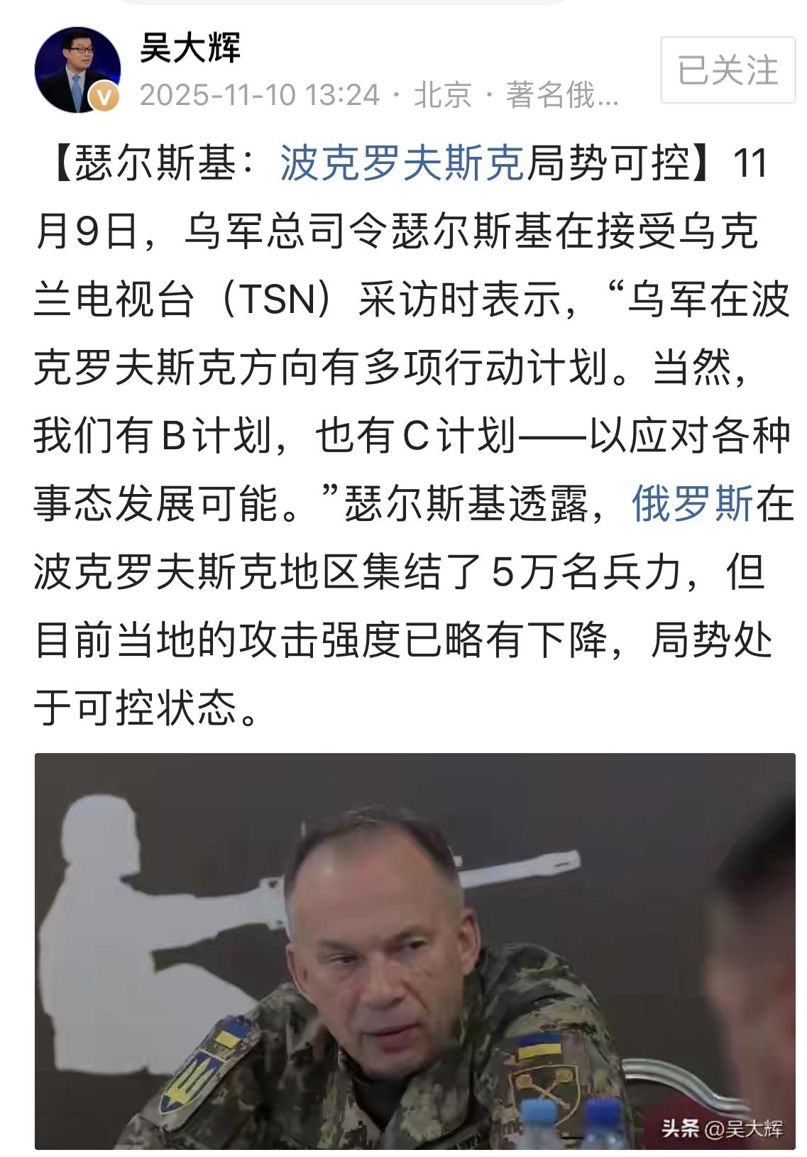 乌军总司令西尔斯基将军说红军村局势可控,乌军有多套计划应对不同的局面。 最近乌克