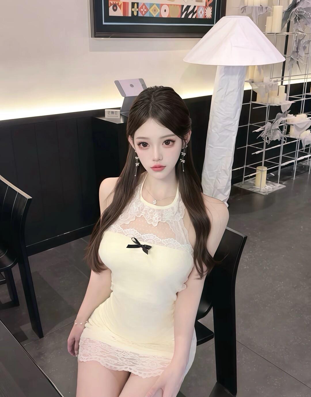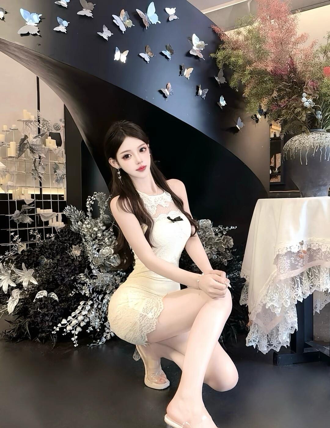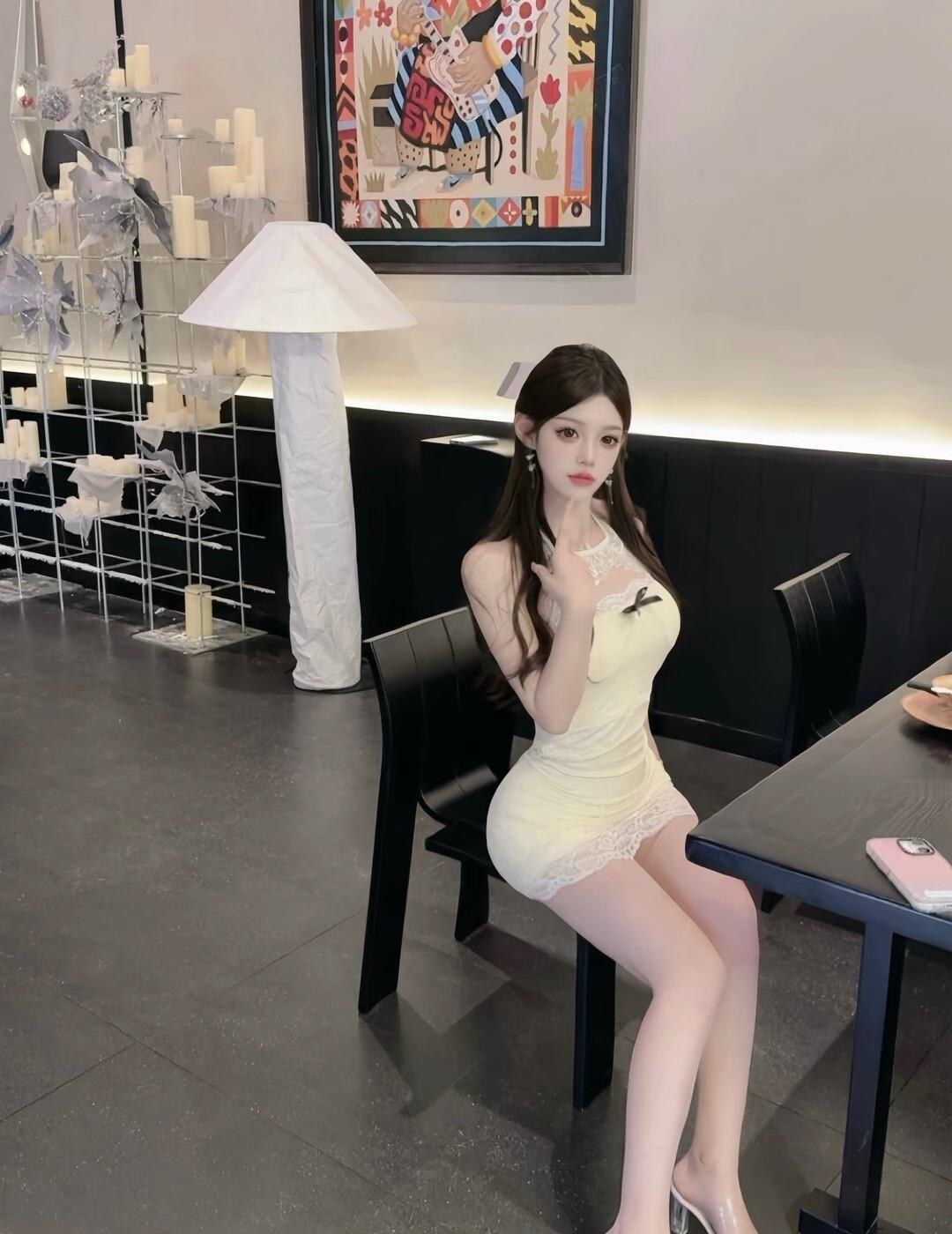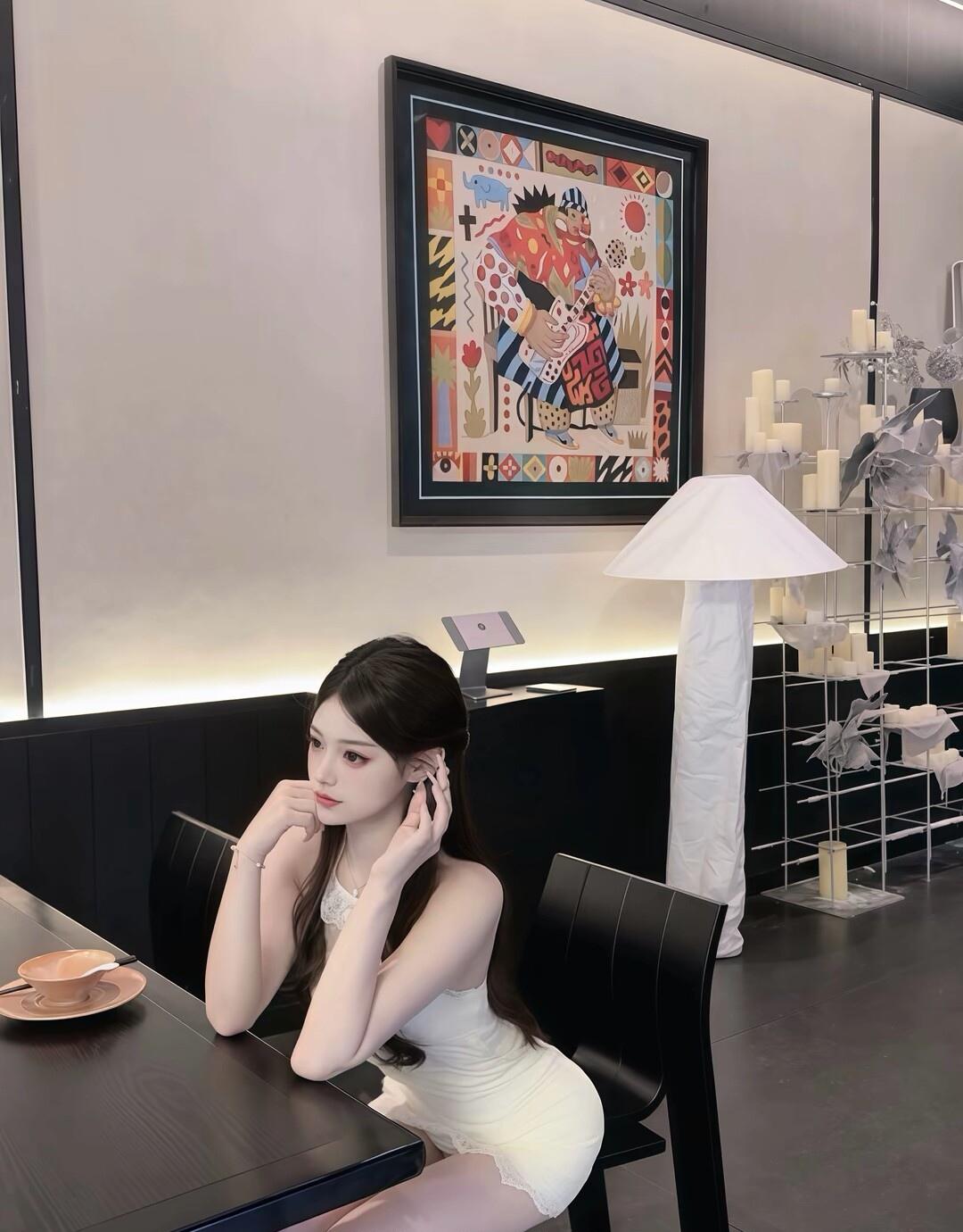 温柔甜美的自拍,白色毛衣搭配黑色裤子,简约又时尚!💕✨