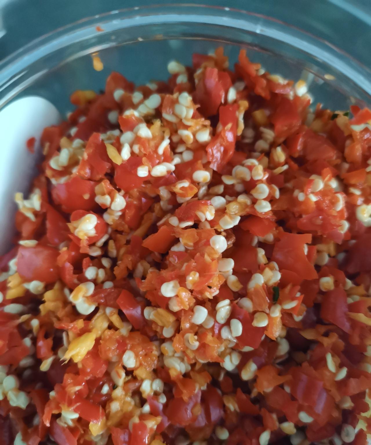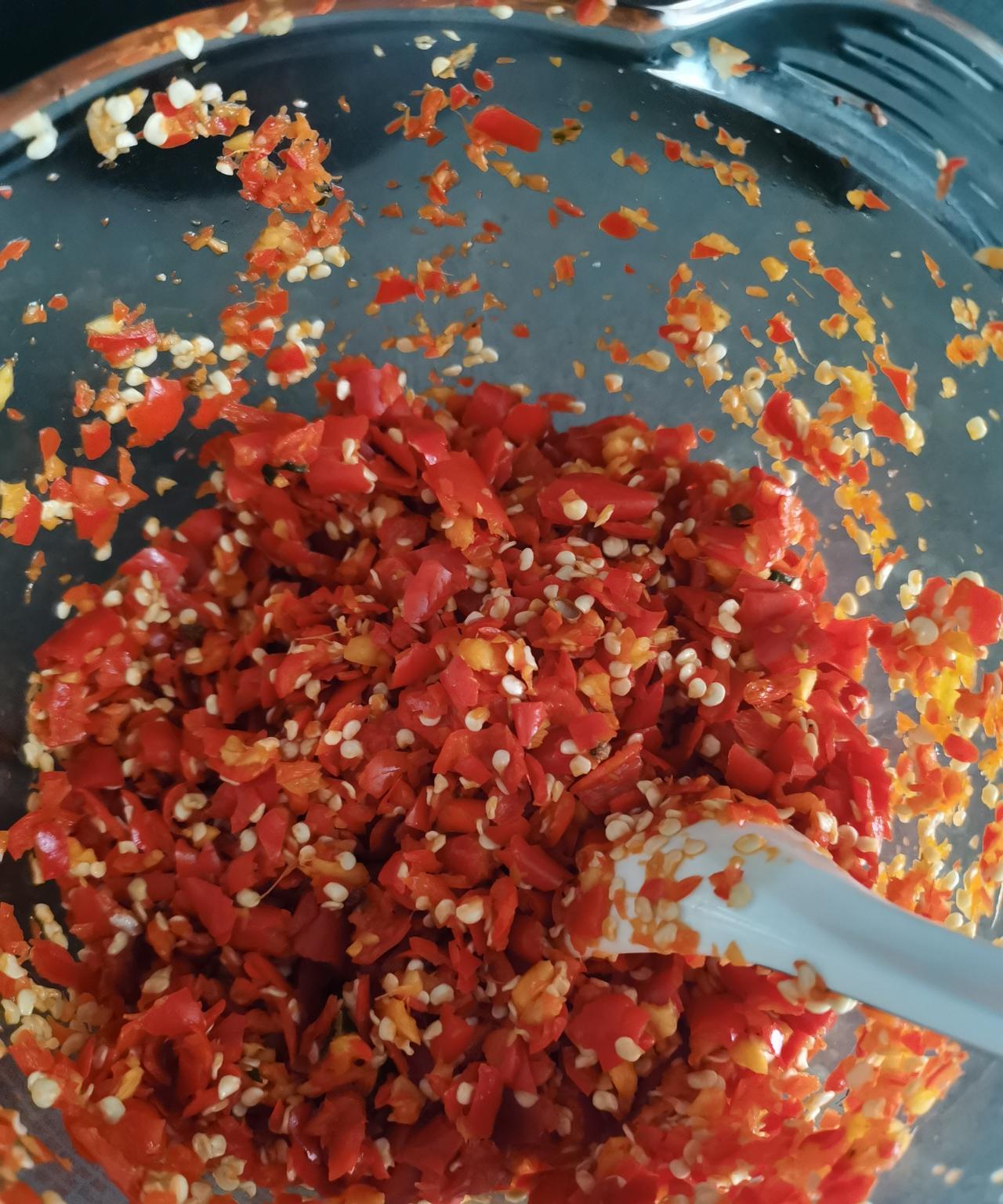 今天在超市看到小米辣3块98一斤,我买了一斤多,我们家无辣不欢,小米辣是必不可少的。每天买菜时都要买几个,几个都要两三元。 一斤多小米辣要吃很多天,怕不好保存,我把小米辣洗干净,沥干水分,放了两片老姜,放了一把花椒,一起打碎,做成了剁辣椒,装在瓶子里,放在冰箱保存。 以后炒菜的时候就不用天天切小米辣,每餐炒菜的时候放一小勺就可以了,省钱又省事。 今年的菜特别贵,除了猪肉没涨价,别的菜都在涨,一斤猪肉13元,一斤西洋菜15元,香菜25元一斤,豌豆苗也15元1斤,大白菜和白萝卜便宜一点,2元一斤,别的菜都贵。 友友们,你们那边的菜贵吗,广东这边的青菜比去年翻了一倍。 #晒图笔记大赛#