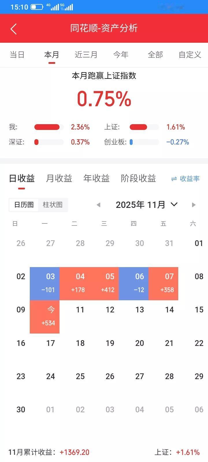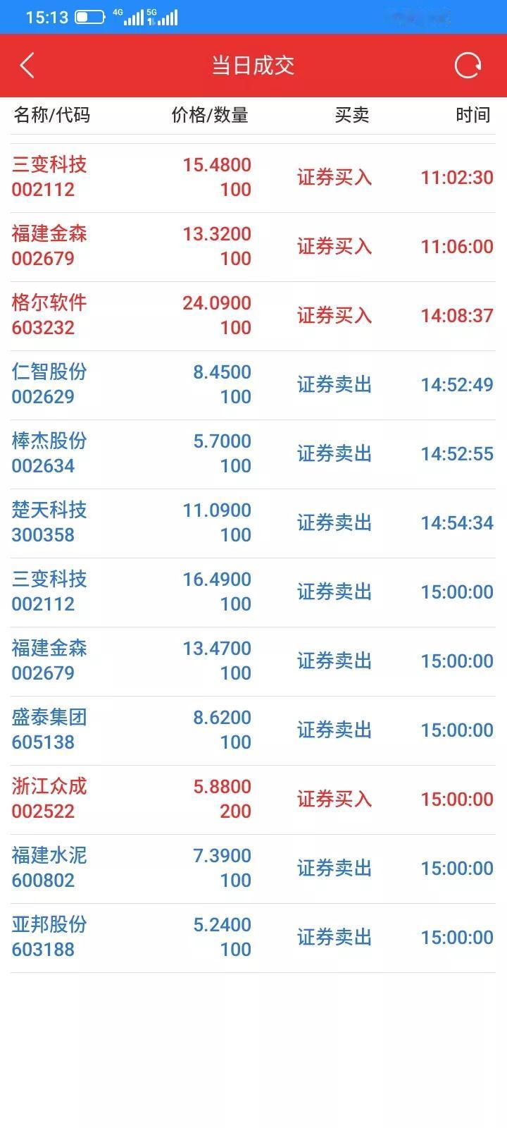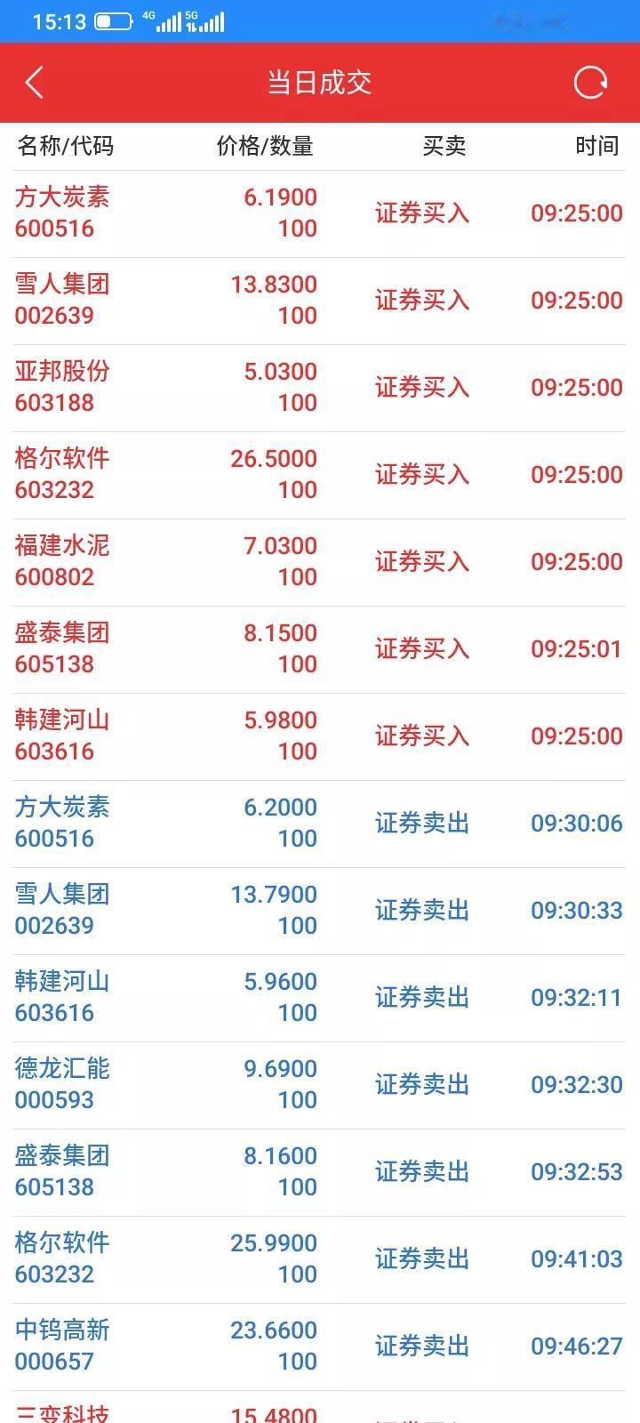 2025.11.10,今天上证指数继续上涨,大部分股票都上涨,我持有的也大部分上涨,但是有两只大跌,早上集合竞价买入了好几只股票,但是早上持有的大部分都向下砸了一下,多只股票触发了我的止损单,都止损了不少,多只股票造成了高买低卖,做t失败,但是还好只是洗盘而已,都反弹上涨了起来,亏了一点不多。 集合竞价以6.19买入100股方大,马上触发了止损单,以6.20自动卖掉了100股,全天下跌,做t失败,赚了1块钱。 集合竞价以13.83买入100股雪人,但是成交之后主力洗盘触发了止损条件单,自动以13.79卖掉100股,又亏了4块钱,还好,只是洗盘,很快涨停了,但是多次破板了,收盘也没有再封住涨停板。还赚一点钱,只是成本做高了几分钱而已。 集合竞价以5.03买入100股亚邦,这只买对了,收盘以6.24卖掉100股,赚11块钱,成本更低一点了。 集合竞价以26.50买入100股格尔,成交之后,冲高到27.34然后逐步下跌,下跌中触发了止损条件单,自动以25.99卖掉100股,亏了51块钱,卖掉之后反弹了一点点,然后继续下跌,下午砸到跌停,提前下了一个跌停价24.09买入100股,砸到跌停,成交了,以24.09买入了100股,还好没有封住跌停板,大幅反弹,但是还是跌下去了,收盘又拉起来一些,做t失败,相当于25.30补仓了100股,做t赚到69块钱。 集合竞价以7.03买入100股福建水泥,收盘以7.39卖掉100股,做t成功,赚到36块钱。 集合竞价以8.15买入100股盛泰,成交之后,触发了止损条件单,自动以8.16元卖掉100股,做失败,赚1块钱,收盘以8.62再卖掉100股,留下100股。 集合竞价以5.98买入100股韩建,成交之后下跌触发了止损条件单,自动以5.96卖掉100股,做t失败,亏了2块钱,又是洗盘,还好,还有100股。 上午看到三变有点跌不下去的样子,于是以15.48买入100股三变,成交之后又下跌了几分钱,但是方向正确,收盘以16.49卖掉100股,做t成功,赚101块钱。 上午看到金森也像跌不下去的样子,于是以13.32买入100股,成交之后继续下跌,又买错了,买贵了一两毛钱,但是下午突然拉升,最高冲高到13.93,但是想赚更多,收盘又跌下来了,收盘以13.47卖掉100股,赚15块钱,也好,降低一点成本。 收盘以5.88又新建仓买入200股众成。 早上下跌中德龙触发了止损条件单,自动以9.69卖掉100股,又被洗出来了,卖掉之后没有下跌,反而上涨,错过了就算了,赚30多块钱算了。 今天中钨下跌,触发了止损条件单,委托以23.66卖出100股,下跌太快,没有成交,后来反弹成交了,卖掉了又反弹上涨,不过最终还是对的,还继续下跌,亏了80多块钱算了吧。 感觉仓位太重了,再卖掉一些,收盘前8.45清仓卖掉100股仁智,前几天赚100多块钱,太贪心,离场才赚10块钱,就当没有买过它吧,赚钱比亏钱好,以5.70清仓卖掉100股棒杰,赚90块钱,以11.09清仓卖掉100股楚天,前几天买入亏损了,因为不甘心,再次建仓,又多亏了20多块钱。 今天总体新建仓一只股票,清仓了5只股票。t了700股,赚200多块钱。总市值4.24万元,总资产5.56万元,从大亏几百块钱,到收盘总体账户反弹回本533元。A股指数 上证指数 指数要冲高 股大盘指数 收盘指数 指数拉抬 沪a指数