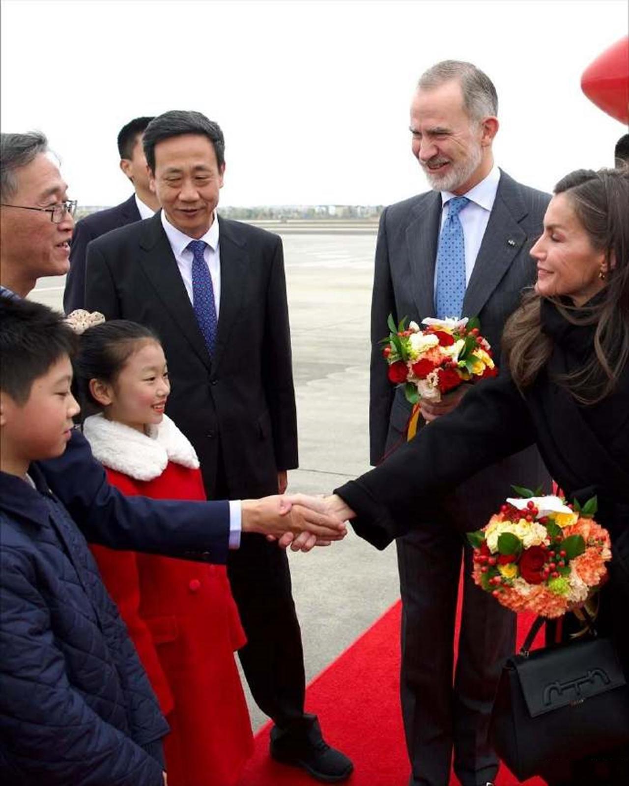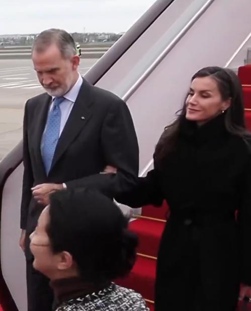 11月10日!西班牙国王和王后抵达成都机场,现场欢迎仪式超隆重。 从曝光的画面我们可以看出,西班牙王后和国王没有换新造型,和出发时候穿的一模一样。唯一让人惊喜的的是,西班牙王后和老公费利佩国王下飞机的时候还牵着手。 另外,在成都机场,欢迎西班牙国王和王后的仪式也是超级隆重,现场不仅有红毯铺地,还有鲜花小朋友,以及迎接他们的工作人员。另外现场还有一位非常漂亮的女保镖,可惜的是,这个女保镖不是严月霞,估计西班牙王后抵达北京之后严月霞应该能出来。据悉西班牙王后和国王要在我们这访问三天时间。