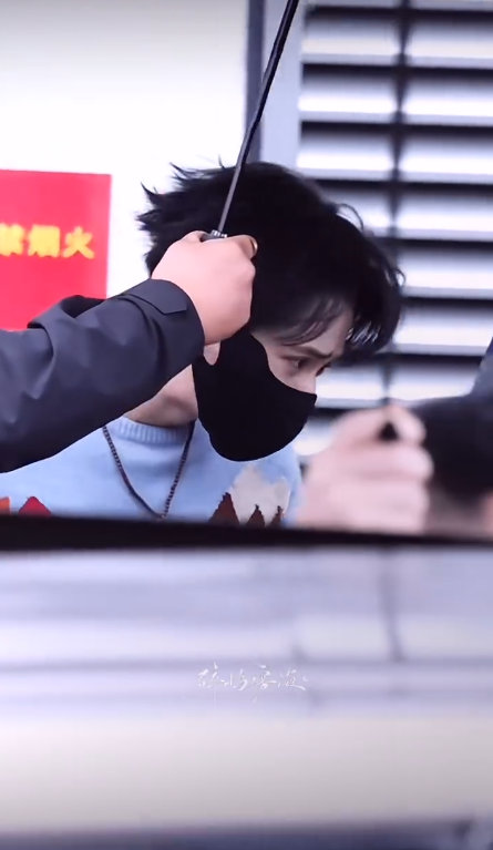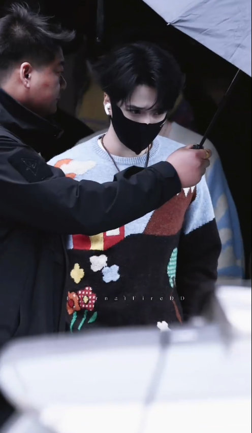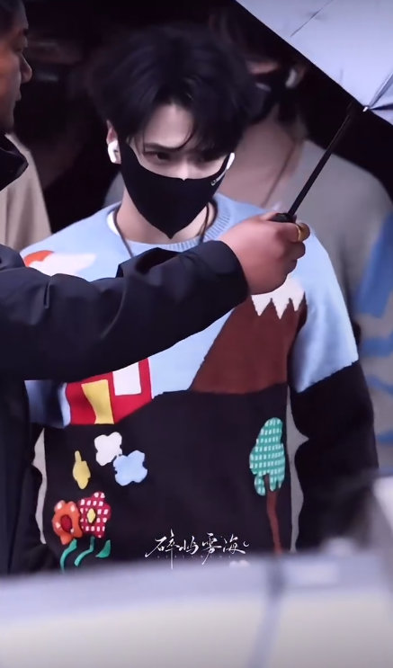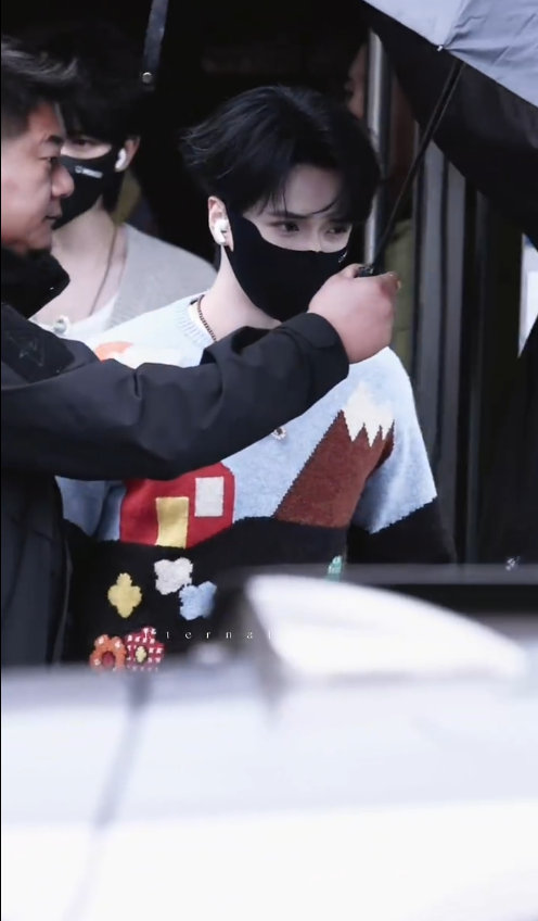 严浩翔转身打招呼这一下 严浩翔灰黑拼色毛衣look