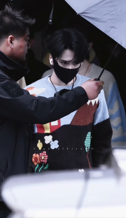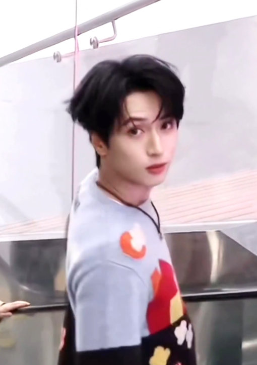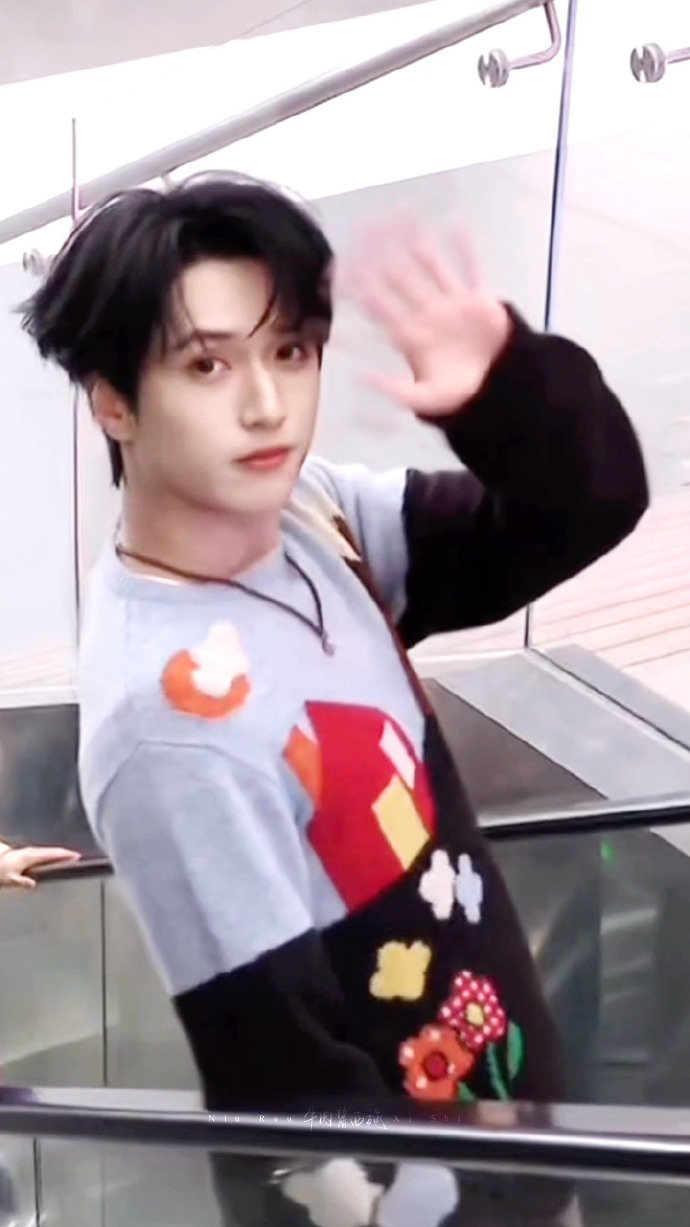 严浩翔转身打招呼这一下,严浩翔灰黑拼色毛衣look,谁懂我们浩翔酷盖也能乖萌感呢,极致的冷面反差萌啊~