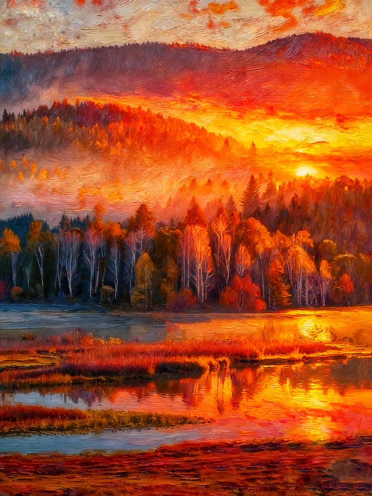 诗与远方就在这里 精美壁纸 油画欣赏 落日余晖映晚霞一抹夕阳美如画 带你走进画里