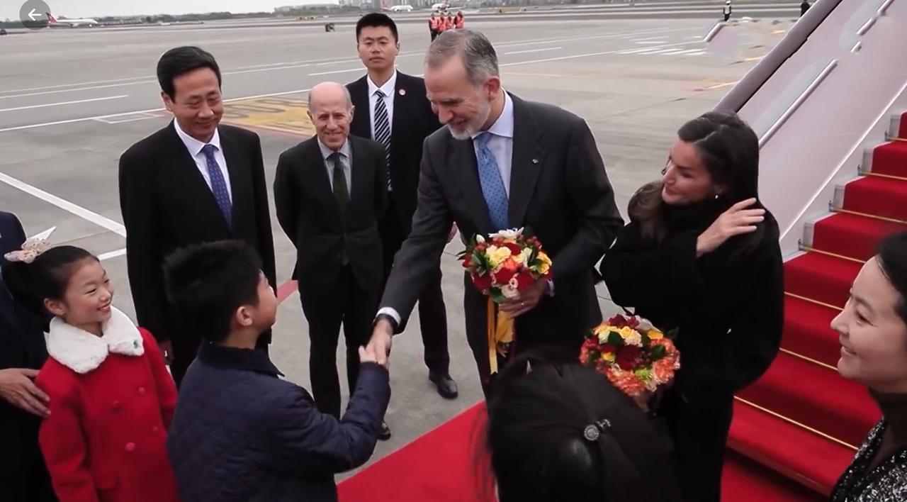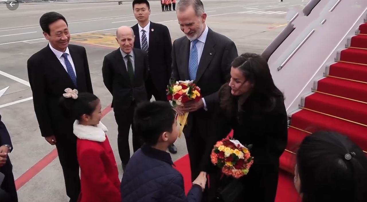 西班牙王后访华,为她献花的小男孩儿火了!11月10日西班牙国王夫妇的专机抵达成都