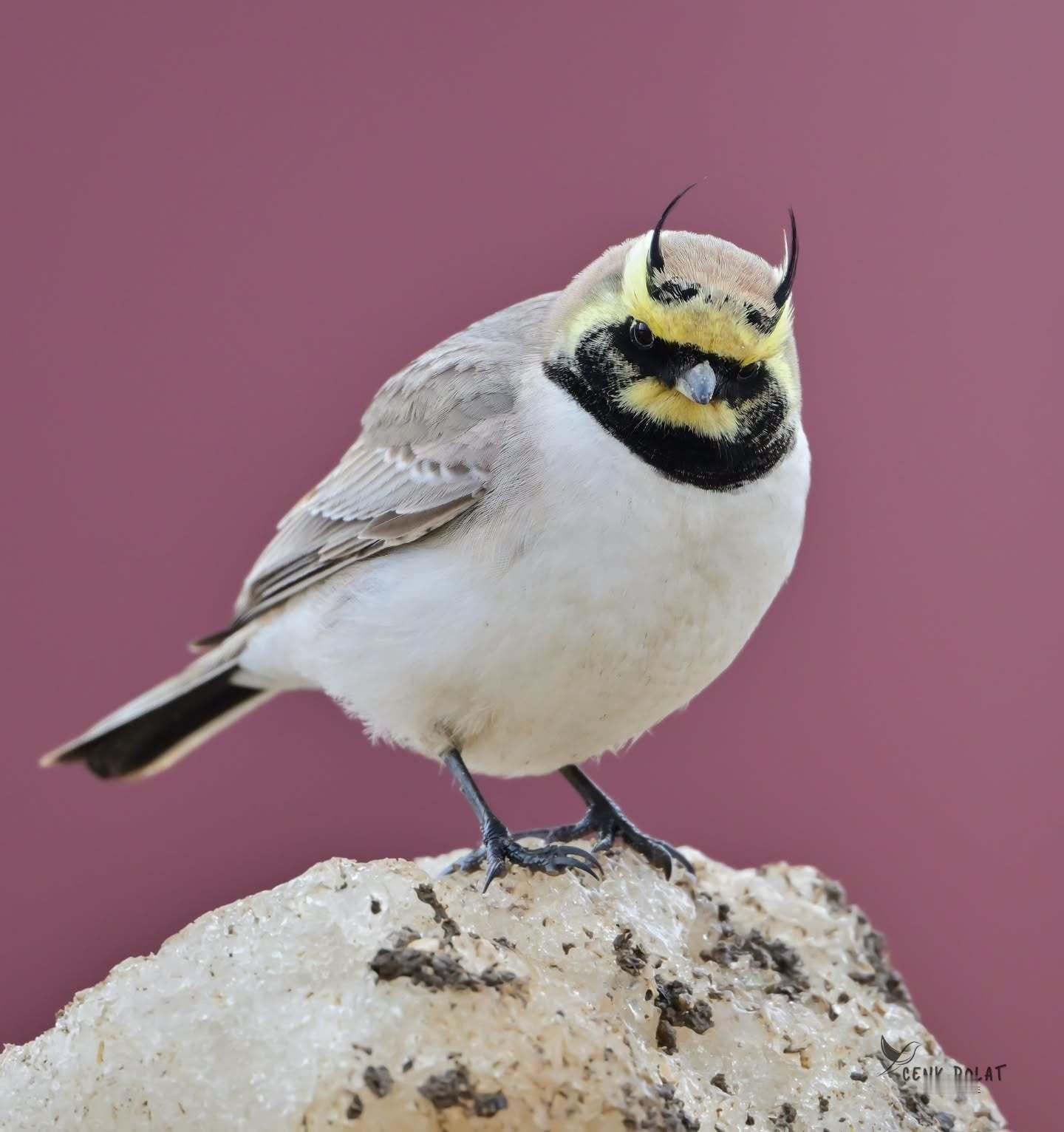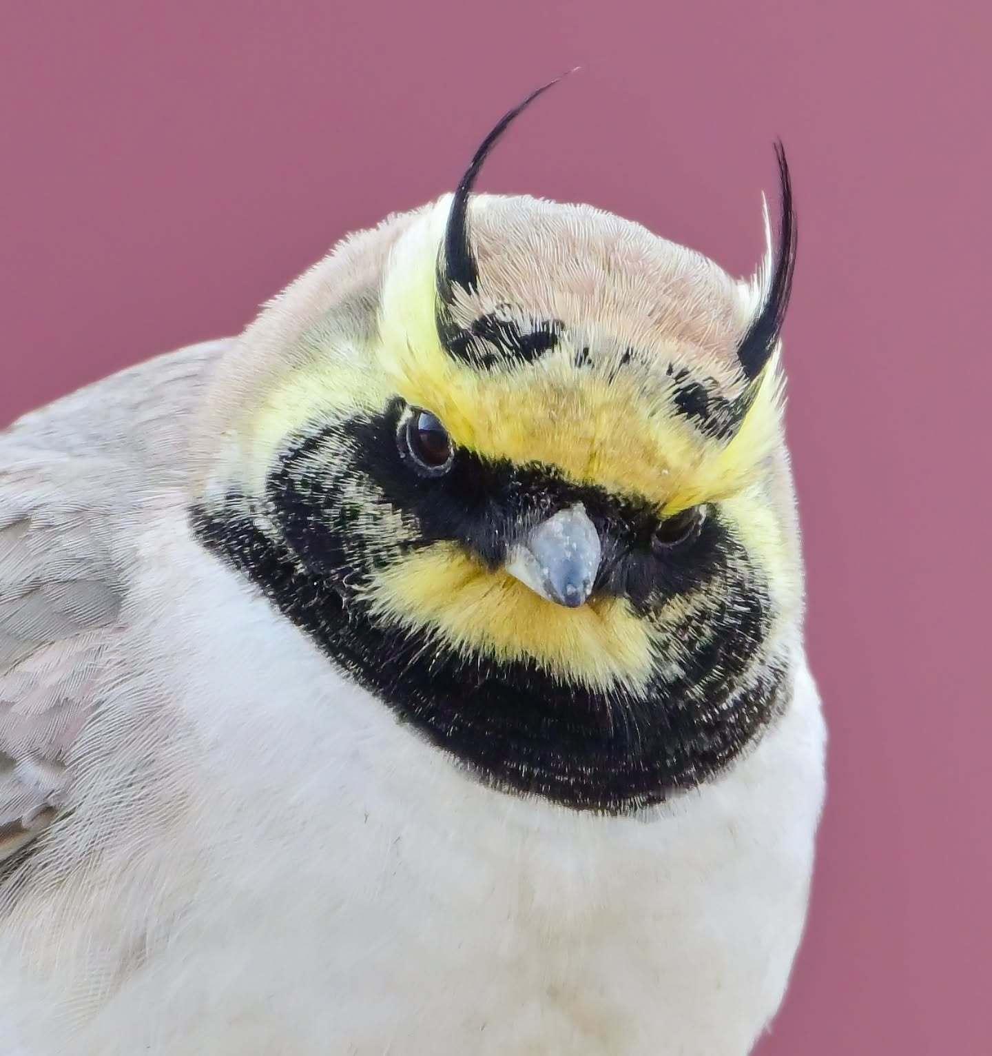 角百灵(Eremophila alpestris )繁殖羽的雄鸟~