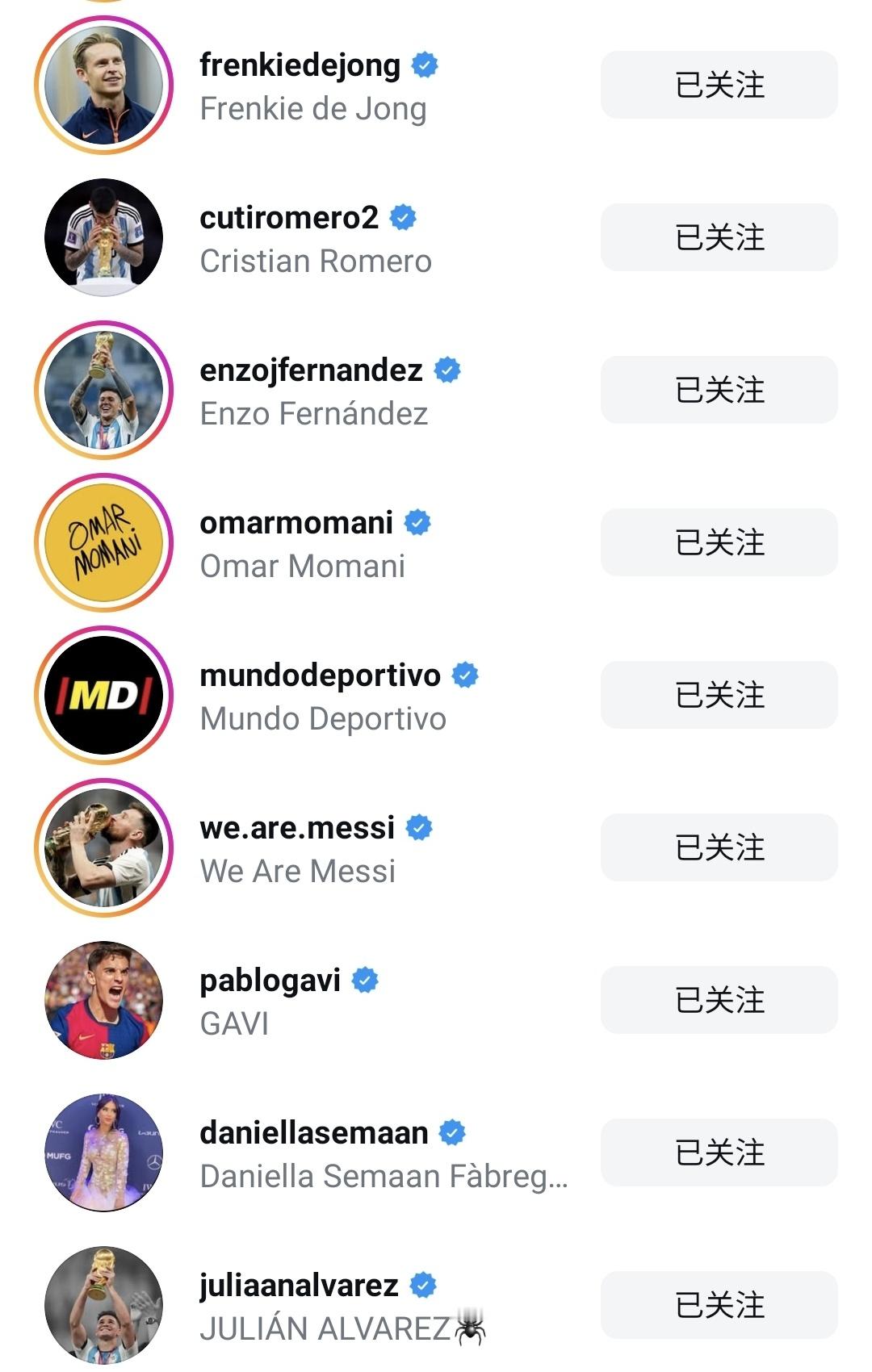 加维、德容、加西亚和奥尔莫点赞了梅西回诺坎普帖子。梅西晒照重返诺坎普