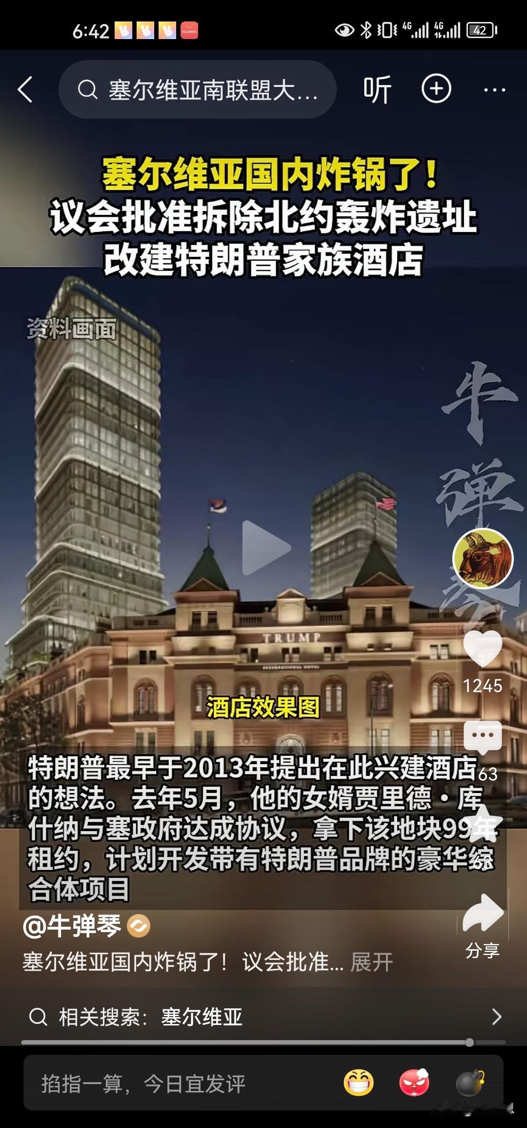 同意拆除北约轰炸遗址,改建特朗普家族的酒店,577在特朗普面前还是屈服了,还记得577在特朗普第1个任期的时候访问美国特朗普给他坐小板凳,说到底,577实不容易,但他此番确实是软弱了,随意更改国耻,如何面对死去的人