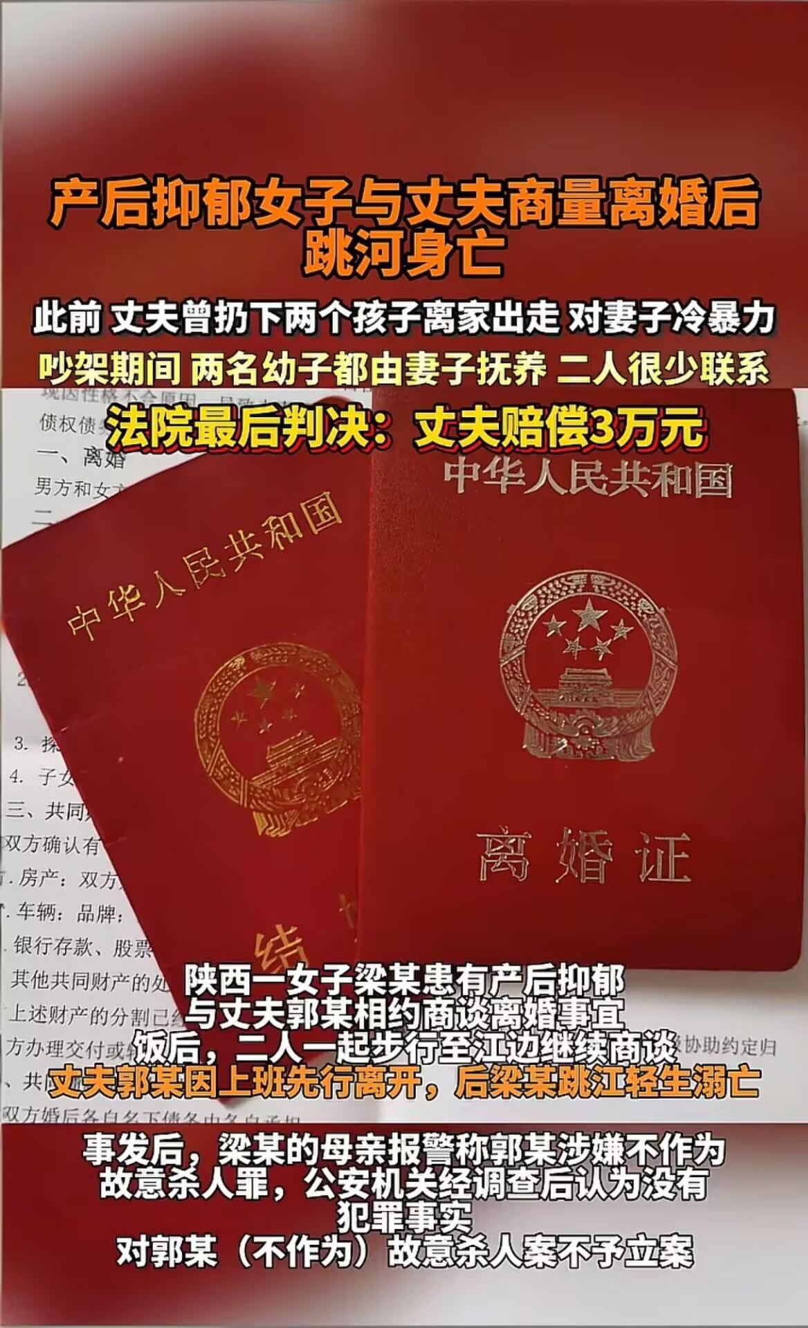 陕西有个产后抑郁的女人,跟丈夫谈完离婚就轻生了,最后法院判丈夫赔3万块钱。 3万?说真的,这钱连她半分痛苦都抵不了,更别说买回一条命。判决看着像给了个交代,其实骨子里就是 “与我无关” 的冷漠 ,她孕期产后最难熬的时候,要的不是钱,是丈夫的一句体谅、一个搭手,可等来的全是冷暴力,把她一点点逼到了绝路。 产后抑郁从来不是 “矫情”,是女人身体和心理双重崩溃的坎,这时候身边人的态度就是救命稻草。可有些男人,偏偏把妻子的求救当无理取闹,把她的脆弱当负担,用沉默、指责、疏远,一点点掐灭她的希望。 这3万赔偿,哪儿是赔偿啊,分明是婚姻里责任缺失的遮羞布。婚姻最毒的不是吵架,是明明两个人过日子,你却让对方活得像孤魂野鬼。冷暴力这东西,看不见摸不着,却能一点点耗干人的精气神,比刀子还伤人。 真希望所有人都能懂:身边人难的时候,尤其是女人产后最脆弱的阶段,多份耐心少点冷漠,多些担当少些逃避。别等人没了,才用几个钱来装样子,到那时候,说什么都晚了,赎不清的愧疚,换不回的生命。大家对此事怎么看? 情感 产后抑郁症有多严重
