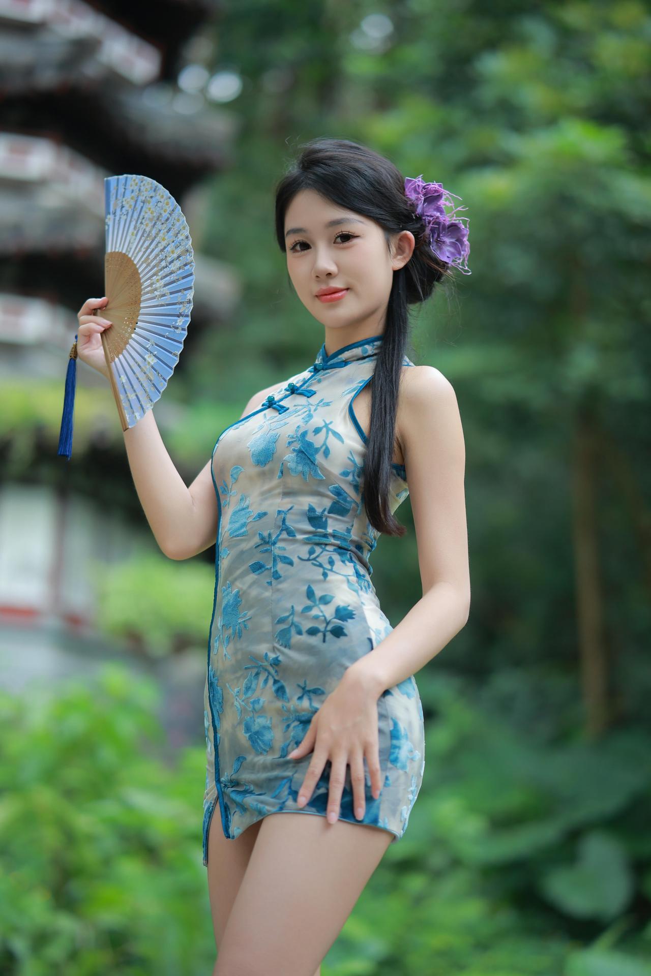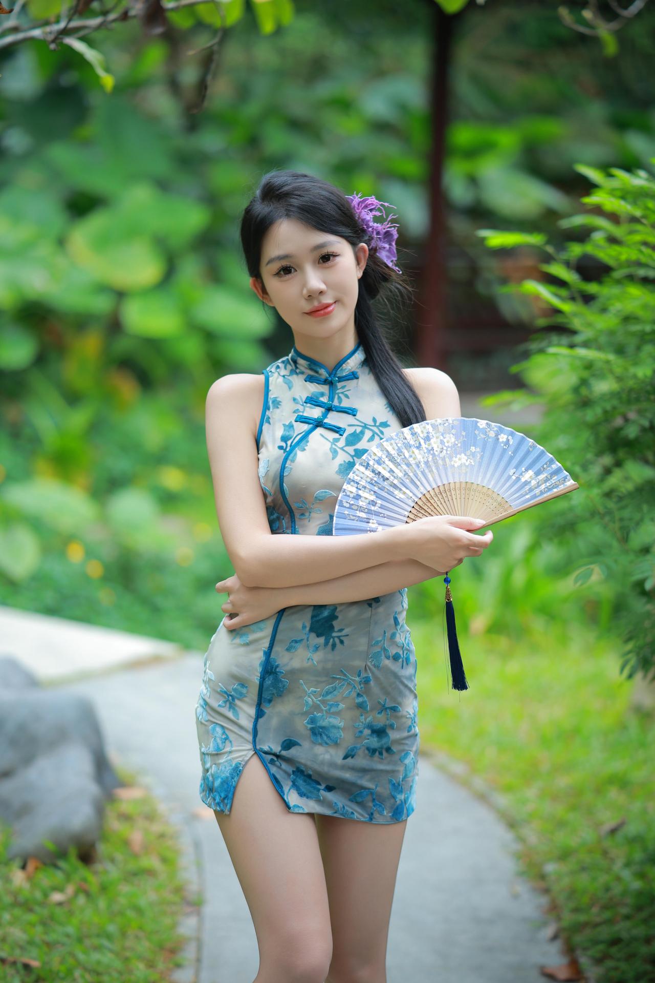 时光清浅,百事从欢。 一袭青花旗袍, 摇曳在绿意葱茏的庭院, 执扇轻摇,暗香浮动。 远山含黛,近水含情, 亭台楼阁间, 是岁月静好的诗意栖居。 青石小径,苔痕点点, 一步一景,皆是心安。 愿日子如这般, 不慌不忙,温柔绵长。 = = = = = = = = = = = = = = = = = = = = 摄影思路分享: ①拍摄时采用大光圈定焦镜头(如85mm f/1.8),营造极致背景虚化,突出旗袍纹理与模特姿态。 ②利用侧逆光勾勒发丝与旗袍轮廓,让青花图案更具质感。 ③构图上结合古典园林的亭台、绿植做前景/背景,用三分法、S形构图强化东方美学,同时通过模特手部动作(执扇、抚发)增加画面叙事性,精准拿捏传统与时尚的融合感。