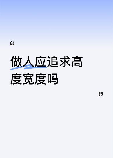 做人当然要追求高度和宽度!高度靠努力攀登,宽度在不断提升中培养。就像王毅,17岁去东北建设兵团戍边,别人休息时他借着油灯自学日语、读名著。恢复高考后,他考入大学,还边工边读拿到硕士学位。他不断提升自己,为人生搭建更高轨道。 思维方式决定人生高度,格局大的人考虑长远。生命积淀决定深度,历经时间和经验锤炼,能拥有洞穿一切的眼力。人就得努力奋斗,天天进步,追求高度和宽度,让生命丰盈饱满,这样的人生才够带劲!