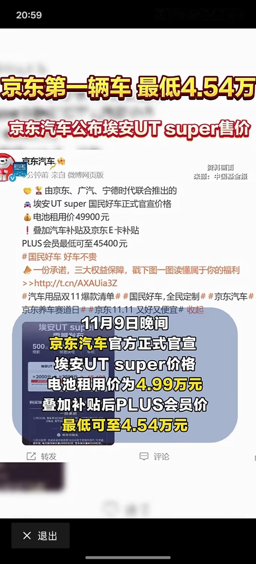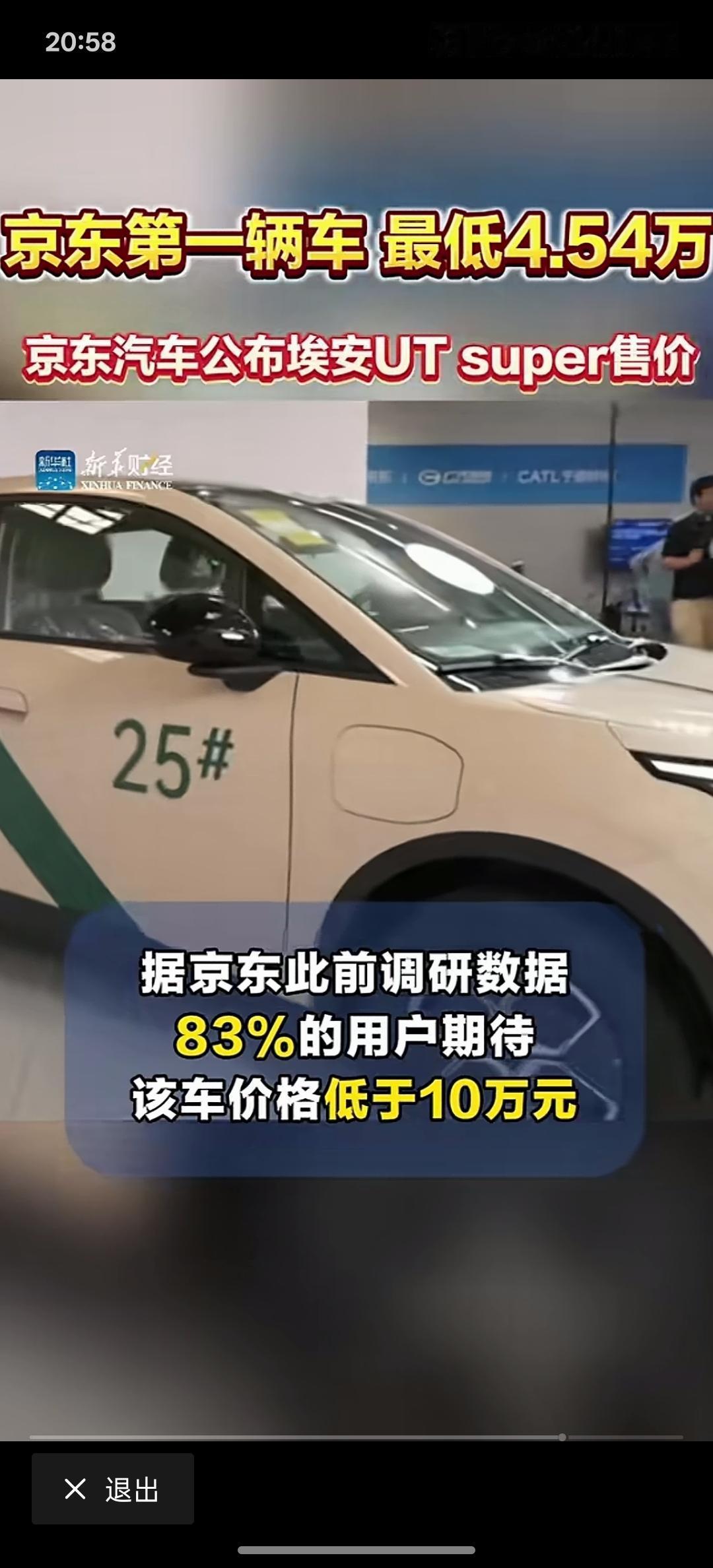 京东真的是国民造好车,第一辆车只要4.5万就可以开回去。这车真的卖的很便宜啊!估
