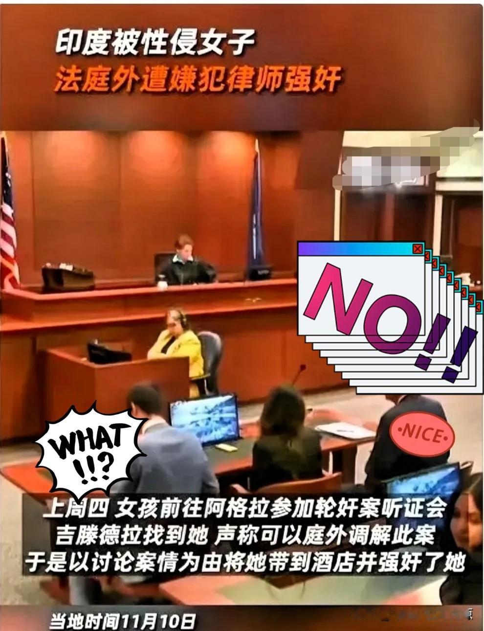 在中国这也只有电视剧里才有的事情。印度女子被三人侵犯,告上法庭,在开庭之前一天又被被告人律师侵犯? 万万没想到 ,印度的违法之徒居然这么嚣张, 女孩子可是千万别去印度了。 经了解,这24岁的女孩在2022年曾遭3名印度男子接连性侵,三年诉讼未得结果,本寄望此次听证推进案件。 但在开庭前一天,被告代理律师说希望“庭外调解”有什么要求可以说出来,大家商量。 结果就这样被骗到酒店再一次被性侵。 这可以说是把印度的司法底线使劲往脚底下踩。