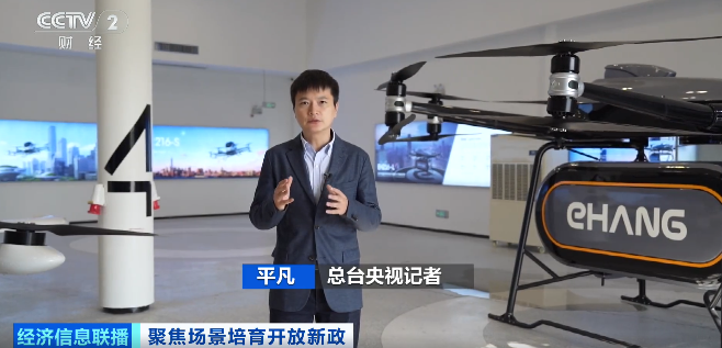 总台央视记者平凡:安徽合肥城市空中交通枢纽港,是培育低空经济的重要场景。这里不仅有物流无人机,也有载人的无人机,这个就是全新一代的无人驾驶航空器,它的续航能达到200公里,将应用在城市间的空中出行。