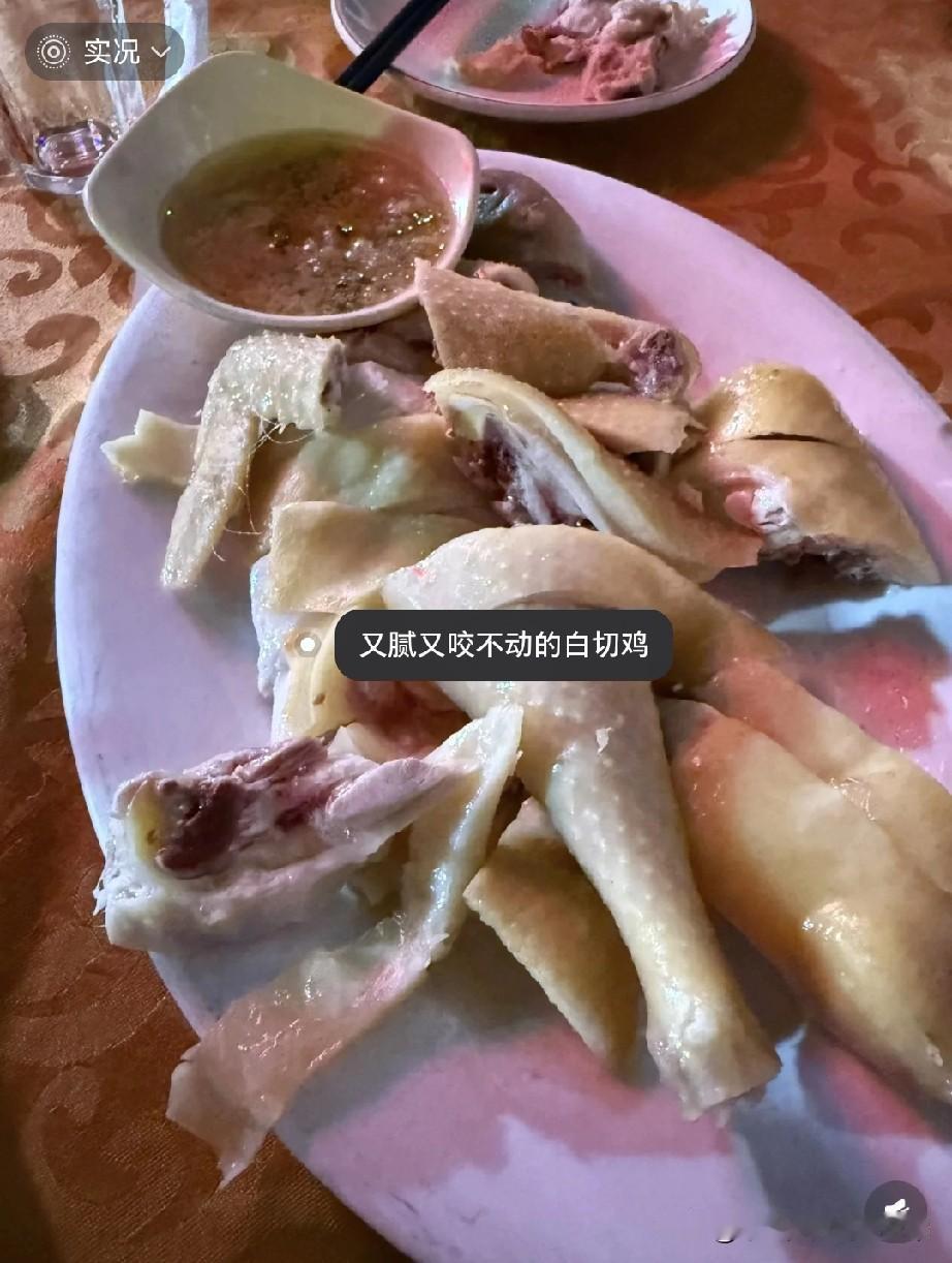 东北人在广州吃白切鸡,直接yue了! 东北朋友第一次冲广州大排档,奔着“白切鸡是粤菜魂”的名头,花69点了半只,结果上桌直接给干懵了—— 鸡翅上那毛比我睫毛还长,扒拉半天没薅干净;夹块鸡腿一咬,硬得像啃冻馒头,骨头缝里还泛着血丝,这是没煮熟?最绝的是皮下那层肥油,厚得能当肥皂搓,一口下去腻得我直嘬腮帮子,差点把早上喝的粥吐出来! 就这玩意儿,摊儿上坐满的本地人还吃得贼香?合着广州人爱吃“带毛带血带肥油”三件套? 你们说,是我没找对店,还是广州白切鸡本来就这味儿? (盐焗老鸡买一送一)广东客家古法盐焗鸡脆皮老鸡两只1400g-1800g