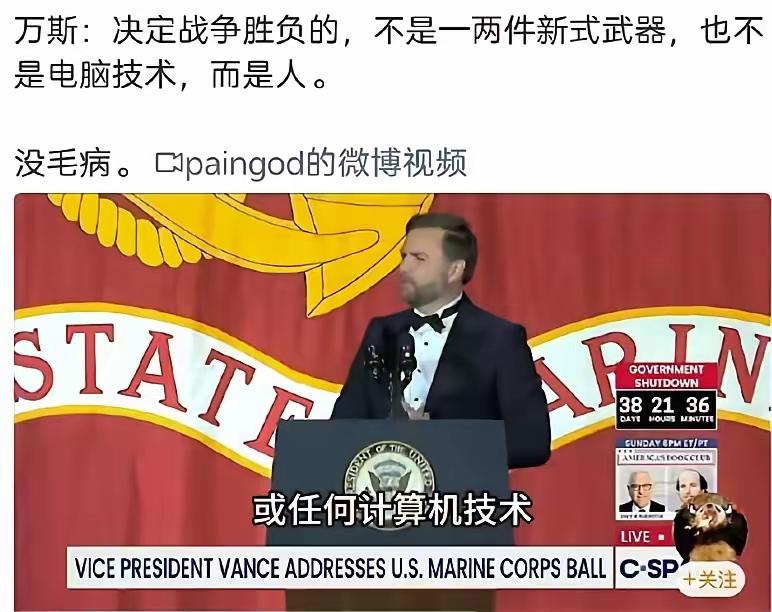 美国副总统这台词我们熟,完全是从咱们抢的。万斯表示,决定战争胜负的,不是一两件新
