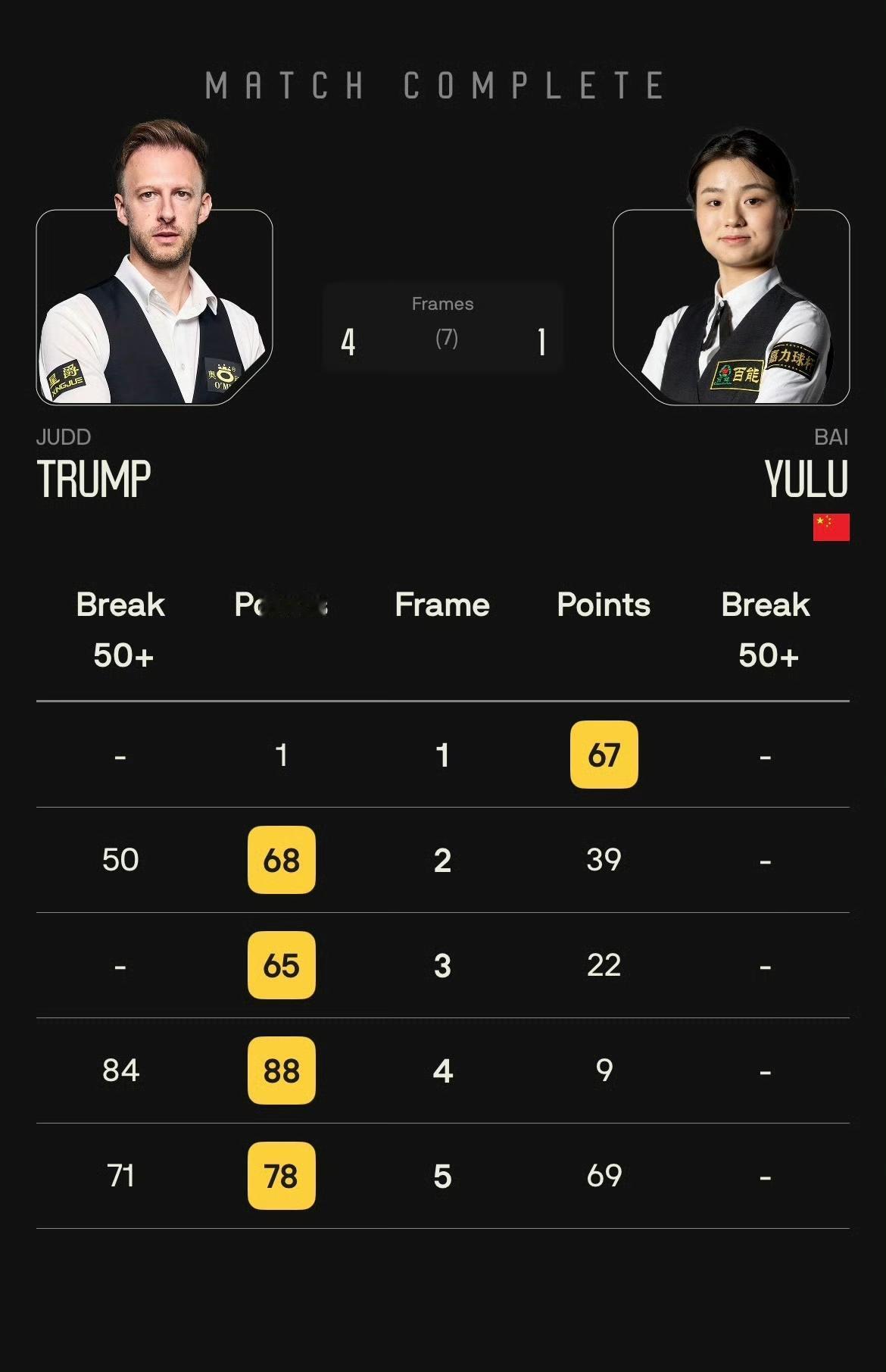 面对世界第一,白雨露还是有点手软,本来可以挽救一个赛点,结果最后那个黑球的致命失误,让小特得以拿下。 2025斯诺克冠中冠小组半决赛: 特鲁姆普4-1白雨露。 雷佩凡4-1墨菲 小组决赛由雷佩凡和特鲁姆普在凌晨三点上演,胜者晋级冠中冠四强。