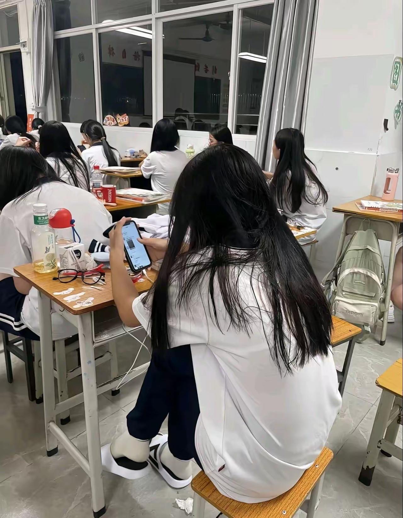 晚自习的教室裹着夏末的闷热,白校服和乱糟糟的桌面,藏着青春期偷偷摸鱼的小雀跃~