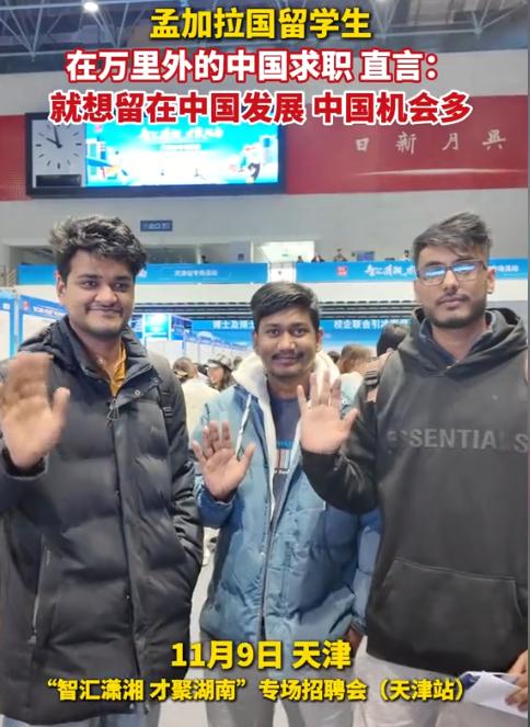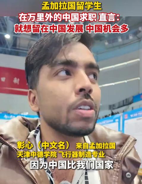 在天津站的招聘会上,有个叫彰心的孟加拉国留学生特别显眼,他是天津中德学院飞行器制造专业毕业的,一开口就说:“我就想留在中国发展,这儿机会也太多了!” 天津站那场湖南专场招聘会里,孟加拉国小伙彰心一开口就火了。 这个天津中德应用技术大学飞行器制造专业的大四学生,在挤满 5000 名求职者的现场穿梭,连着问了机械工程、对外贸易好几个岗位,被问到为啥执着留中国,他直截了当:“这儿机会也太多了!” 这话听着像客套,可当天现场的架势真不是吹的 ——120 家湖南企业摆开摊子,甩出 7857 个岗位,光制造业就占了 2400 多个,最高年薪能到百万,技术类岗位更是占了七成以上。 彰心不是个例。 他所在的学校早有 “留学生留津传统”,2024 年 12 月的专场招聘会上,就有 2 名留学生拿到了海斯坦普汽车组件公司的 offer,这家做车用金属部件的国际企业,就扎根在天津。 更有意思的是,同校同专业还有个叫李慕忱的孟加拉国老乡,比彰心早一天去招聘会,直言自己爱吃辣,就想往湖南奔。 这俩小伙的选择,倒让我想起去年采访的外籍同事,他来自巴基斯坦,学的自动化,留在天津做技术支持,吐槽 “中国公司加班猛,但成长速度是真快”。 有人可能会犯嘀咕:“咱们自己就业都卷,咋还留外国人?” 这话得掰开看。 天津突破电气最近在招国际技术支持,明确写着 “外籍优先”,给 10-15k 薪资,要懂机械电子还得会双语,这种岗位需要跨文化沟通能力,还真不是光看学历就行。 而且国家有规定,外企聘外国人得是 “国内暂缺适当人选” 的岗位,不是随便就能招的。 再说彰心学的飞行器制造,天津中德这专业本就跟 20 多个国家有合作,2021 年还有 6 名泰国留学生没毕业就被本地企业抢走了,真不是随便混个文凭就能留下的。 彰心们的底气,其实藏在学校的 “操作” 里。 学校专门给 8 个外籍毕业生开小灶,对接企业、办宣讲会,连申请硕士的推荐信都帮着写,2025 届留学生里 3 个想就业、3 个想深造,留津意愿高达 75%。 这操作看着暖心,实则是 “双向奔赴”—— 天津需要能对接国际市场的技术人才,留学生需要能施展专业的平台。 就像 2023 年那个叫 “我与中国的美丽邂逅” 的短视频栏目,100 多个国家的留学生讲中国故事,全网播了 1000 多万次,年轻人用亲身经历说话,比硬宣传管用多了。 说句实在的,现在的 “留华潮” 早不是新鲜事。 柬埔寨姑娘陈美琳从这所学校毕业后,回国立理工学院当老师,每堂课都讲中国学到的技术;马瑞德靠着天津政府奖学金读研,研究太阳能技术想解决家乡电力短缺问题。 这些故事里没有宏大口号,全是 “学真本事、找好工作、解决实际问题” 的实在劲儿。 彰心在招聘会上问的岗位,大多需要 CAD、SolidWorks 这些硬技能,他要是没两把刷子,企业也不会多看一眼。 想起之前跟制造业老板聊天,他说 “现在招技术岗,不光看会不会做,还得看能不能跟海外客户对接”。 彰心这种懂技术、通中文、了解中国市场的留学生,正好踩中了需求点。 就像湖南企业组团来天津招人,既是抢人才,也是想借着留学生的桥梁拓宽国际业务。 这逻辑其实很简单:中国市场的吸引力,从来不是靠 “优惠政策”,而是靠 “有活儿干、能成长” 的实在机会。 彰心那句 “机会太多了”,听着直白,却道破了本质。 当一个国家的制造业能提供年薪百万的技术岗,当职业院校能培养出被国际企业争抢的人才,当政策能精准匹配岗位需求,自然会有人慕名而来。 就像网友说的 “不是中国需要留外国人,是中国的机会留住了外国人”,这话或许有点绝对,但道理没差。 你身边有没有外国同事?他们留在中国的理由是什么? 毕竟人才流动最诚实,哪儿有真机会,人就往哪儿去。 中国的发展活力,从来不是报表上的数字,而是彰心们挤招聘会的身影里,是企业渴求人才的眼神里,是那些 “把专业用在实处” 的平凡故事里。 当我们还在讨论 “卷不卷” 的时候,聪明的人已经在抓住机会成长了。 信息来源: 红网红视频——11月9日 “智汇潇湘 才聚湖南”天津站专场招聘会现场,孟加拉国留学生在万里外的中国求职,直言:就想留在中国发展,中国机会多。