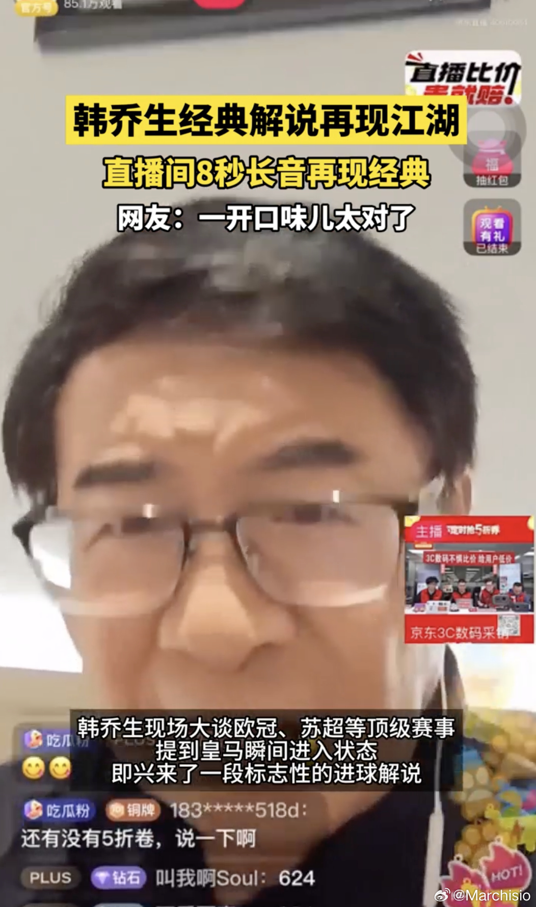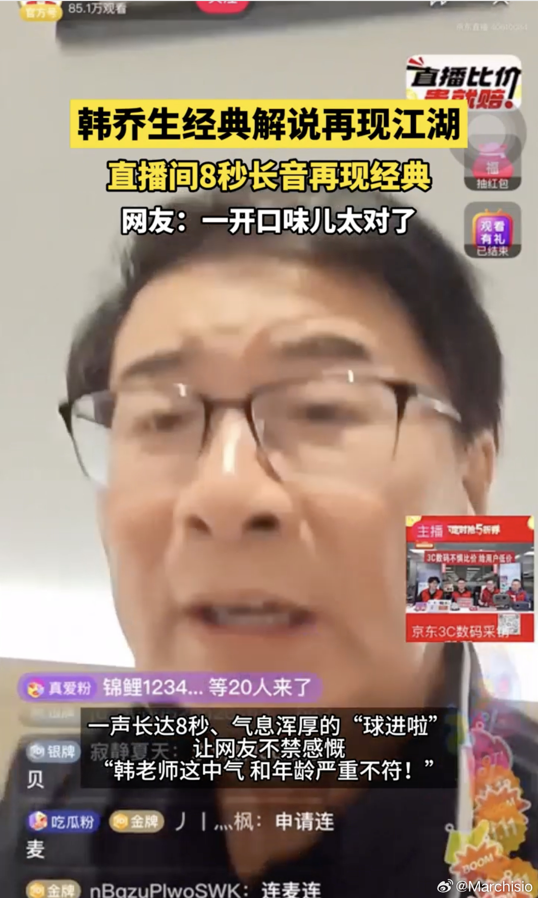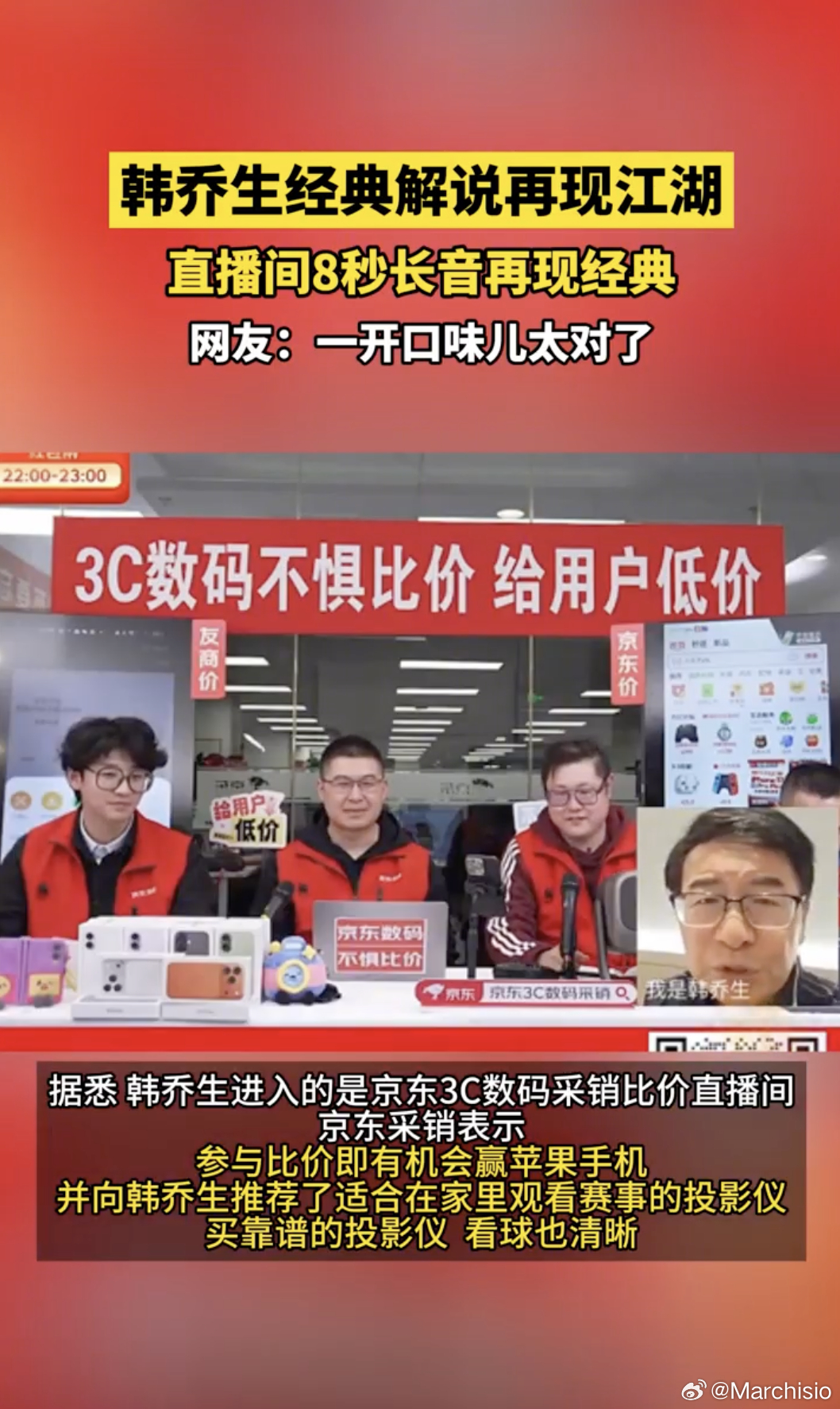 笑死,韩乔生老师连麦进入京东3C数码采销比价直播间,想象一下,当“机关枪式解说”遇上最新3C的数码,韩老师经典的解说再现江湖,直接在京东直播间里8秒长音再现经典,这一开口味儿实在是太对了!!!全场沸腾,下单没跑了!不得不说,买3C产品还是得来京东直播间啊![不愧是你]