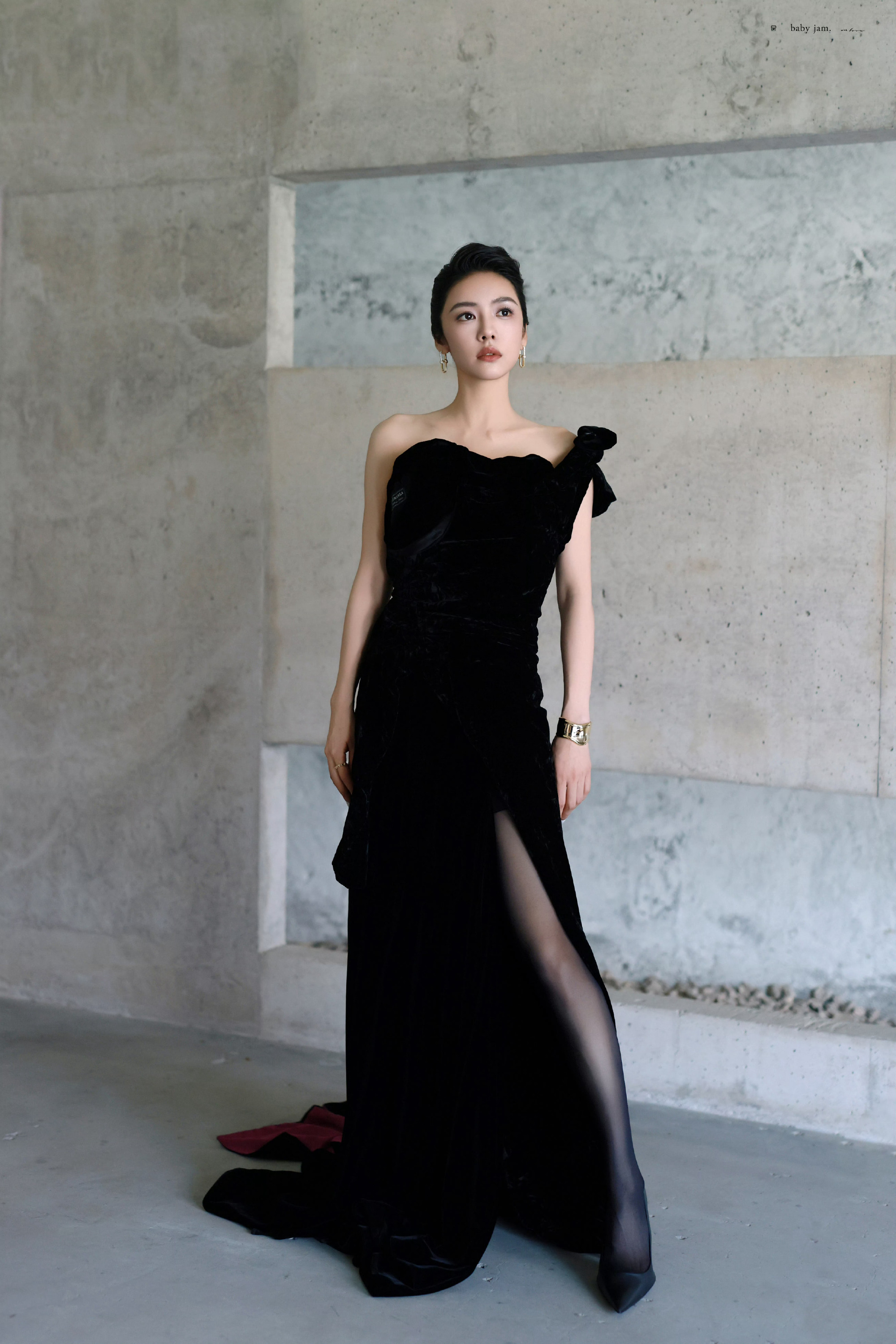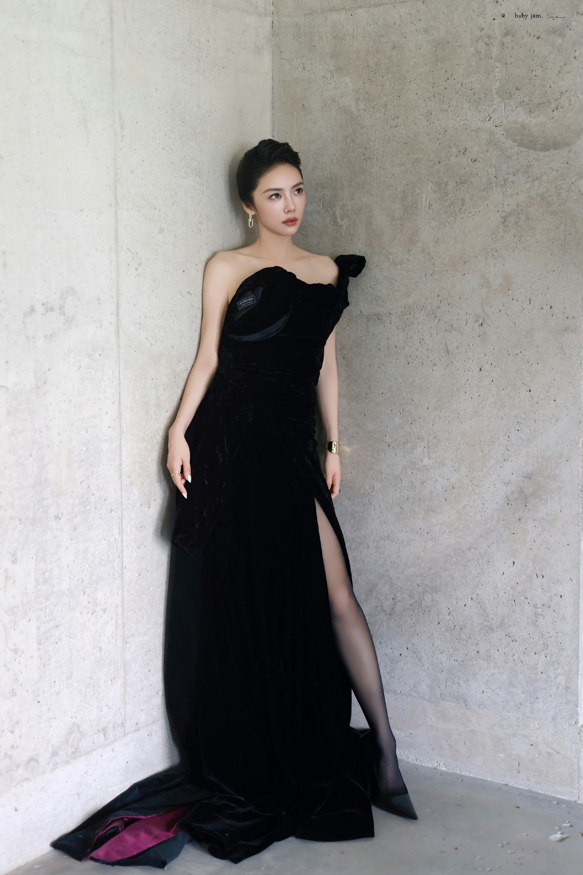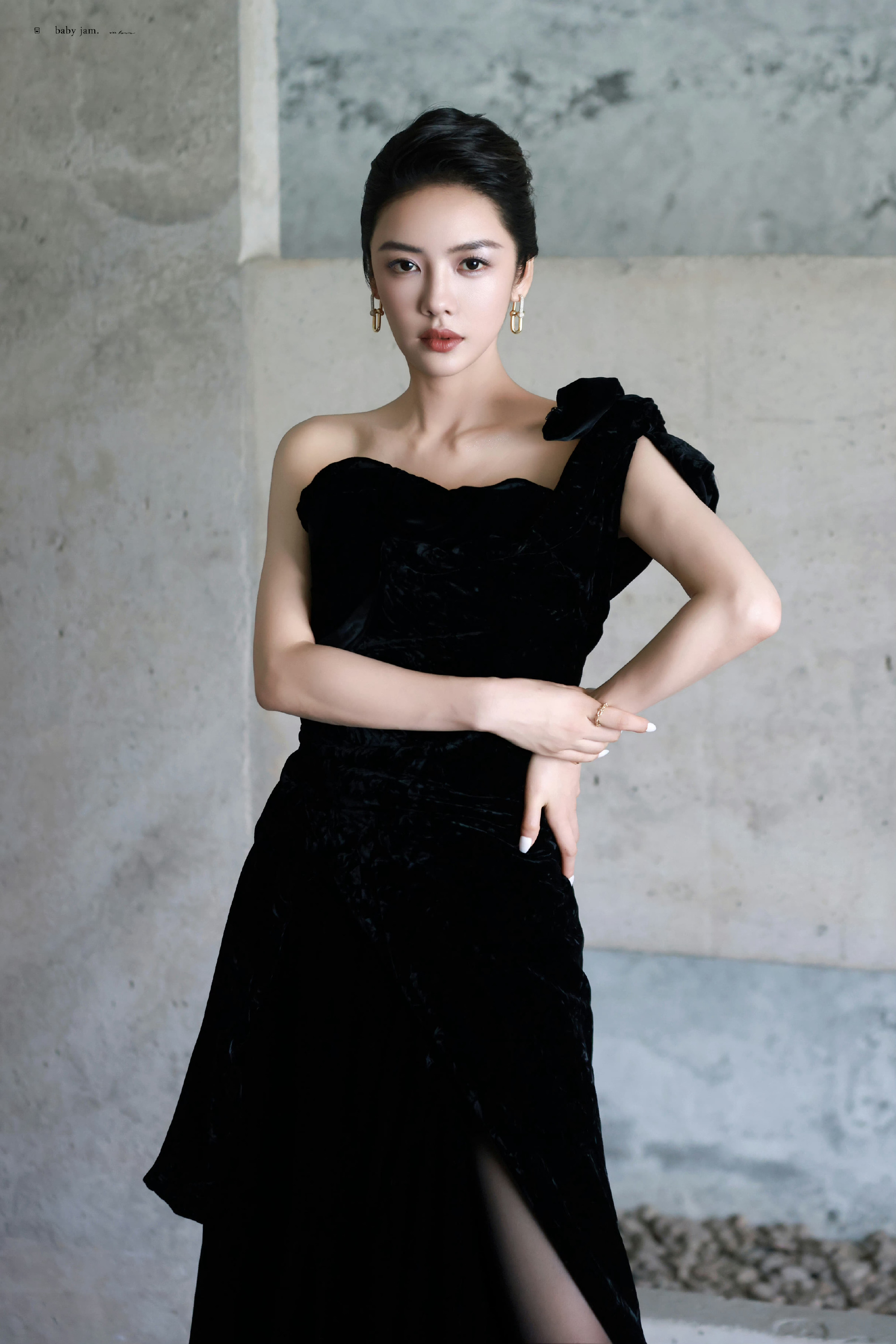 蔡文静,精致盘发,黑色礼服丝袜妆造型,好评!