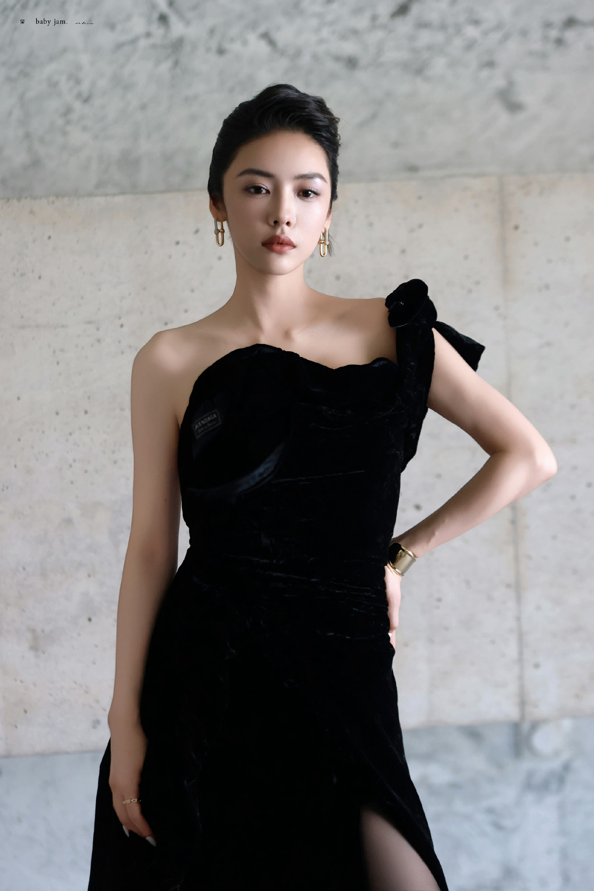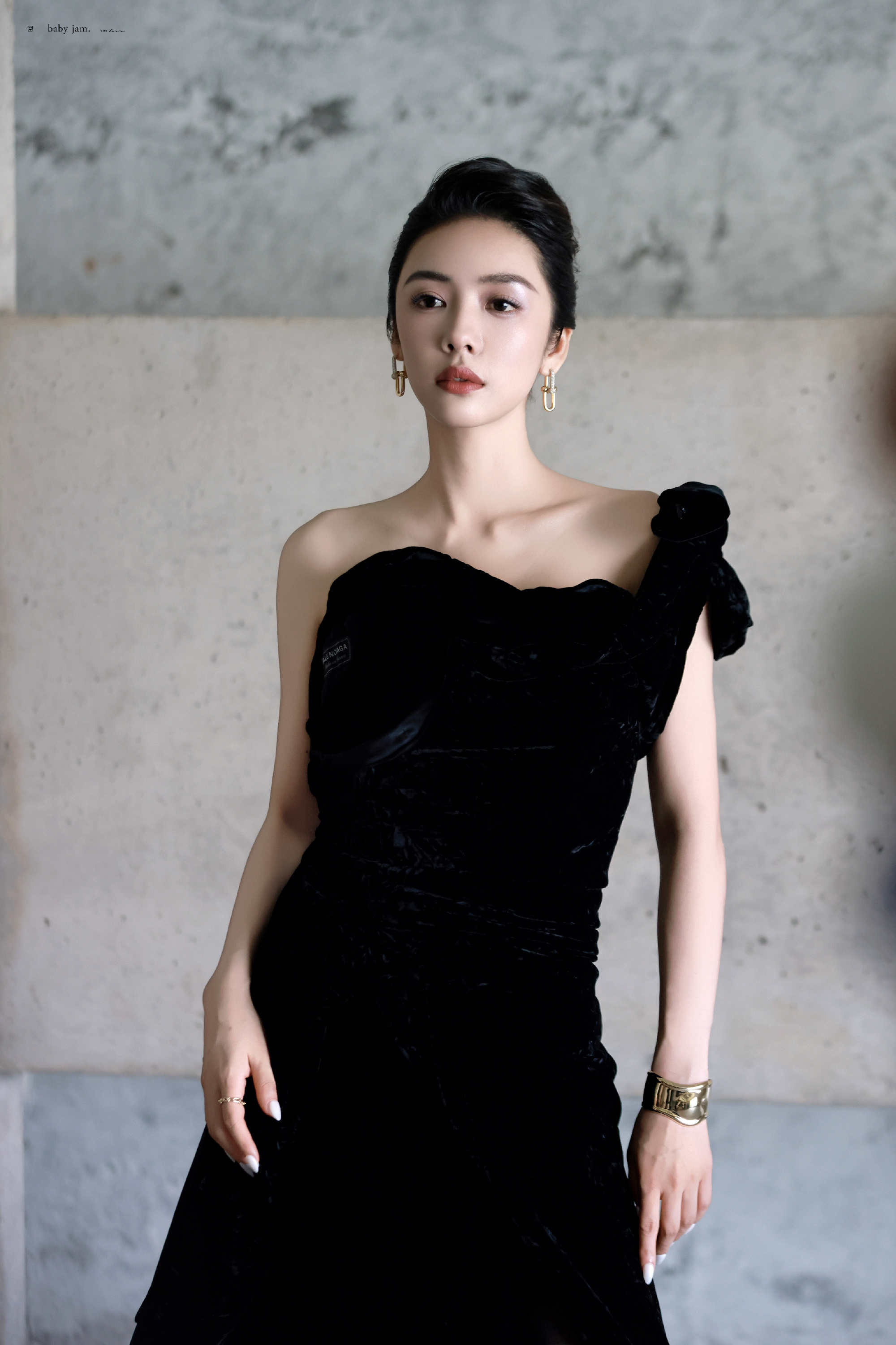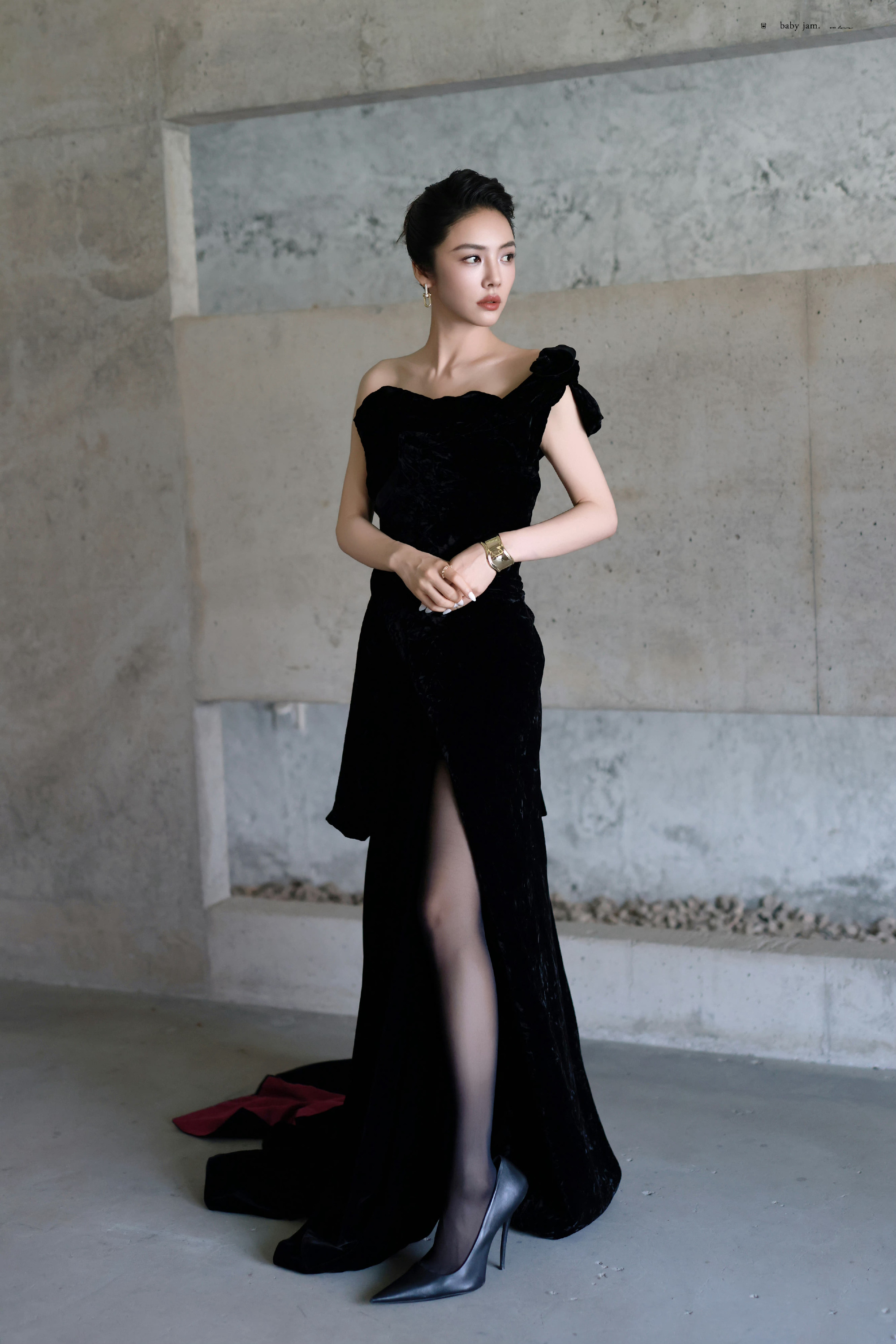 蔡文静,精致盘发,黑色礼服丝袜妆造型,好评!