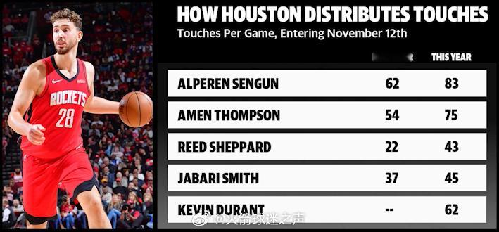 奥康纳:火箭队在失去范弗利特并交易走杰伦-格林后,需要填补很多进攻端的空缺。他们的做法是:让申京担任控球后卫,大幅增加阿门和谢泼德的出场时间,当然还有杜兰特。