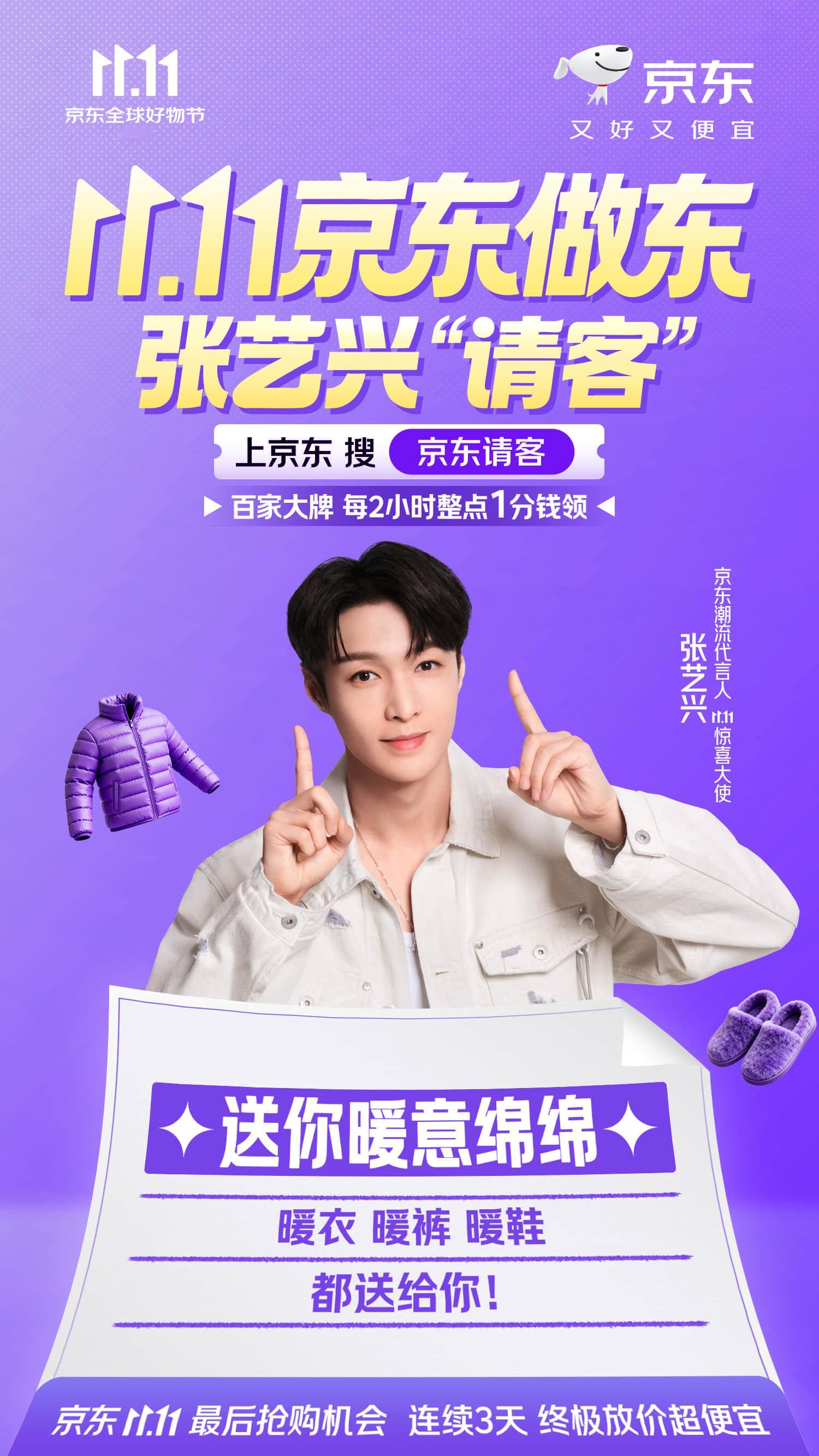 贝壳r们集合啦!今天京东做东,张艺兴请客打包羽绒服、保暖裤、毛拖鞋陪我们过冬了,这份暖意绵绵的宠爱谁能不心动?赶紧去京东当最幸福的客人吧!双11京东做东,京东请客,你做客,送的都是好东东!京东携上百家品牌接龙请客,每天10点起,每2小时整点低至1分钱领大牌惊喜!京东11.11 2351元补贴最后一天 京东终极放价更便宜!2351元补贴,人人可领!京东11.11 又好又便宜双11京东做东携百大品牌请客京东11.11天天请客