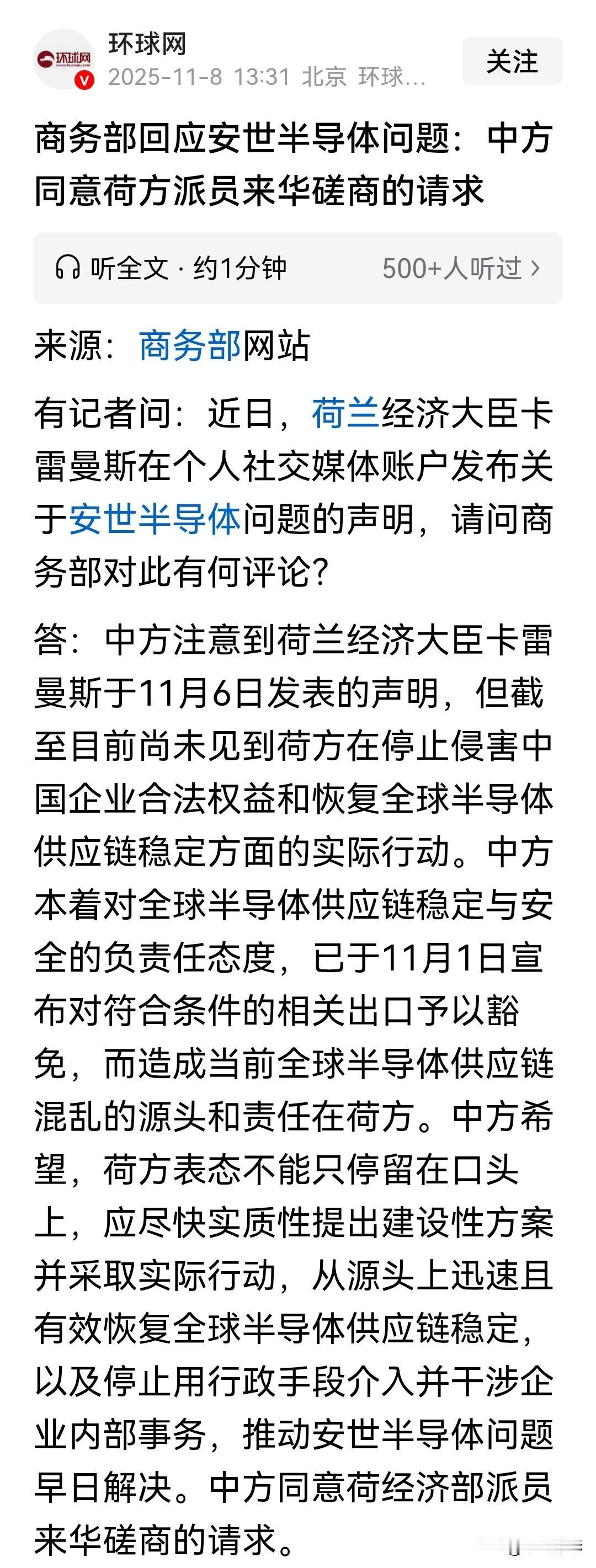荷兰政府最快下周解除对安世半导体的临时接管,把董事会席位、账户印章、工厂钥匙一并交还中国股东。 但前提是安世中国工厂恢复芯片出口。