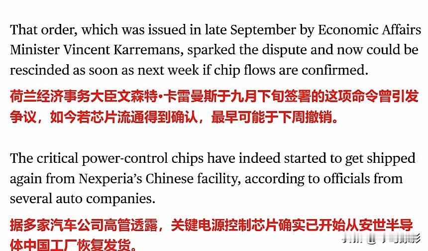 荷兰政府最快下周解除对安世半导体的临时接管,把董事会席位、账户印章、工厂钥匙一并