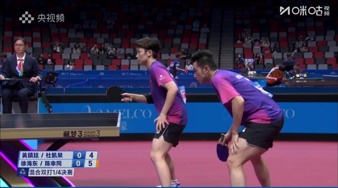 全运会乒乓球混合双1号种子香港杜姐大圣不敌辽宁同同海东! 今日全运会乒乓球混合双打共有四场1/4决赛。 1/4区 香港杜凯琹/黄镇廷Vs辽宁陈幸同/徐海东 这两对组合均是双右手执拍,并且男选手又都是直握球拍。 而辽宁陈幸同单打世界排名第三,远高于香港一姐杜凯琹。 辽宁男选手徐海东身高臂长,单打世界排名也高于香港一哥黄镇廷。 而世锦赛混双铜牌得主,全运会乒乓球混合双打1号种子选手,香港杜凯琹/黄镇廷。 戏剧性当3:1辽宁队领先时,以为比赛结束了!徐海东倒地庆祝! 实际上不是5局3胜制,而是7局4胜制。 只好继续比赛! 辽宁陈幸同/徐海东4:1(10-12;11-5;11-8;11-8;14-12)逆转、大胜香港杜凯珠'/黄镇廷。 江苏蒯曼/陈垣宇Vs湖北徐嘉忆/马特双削组合比赛正在进行中! 2:0(11-7;11-3)暂时领先。