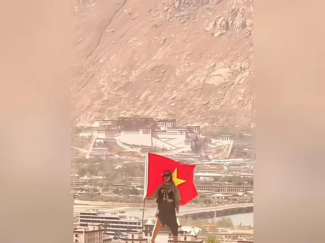 越南网红以布达拉宫为背景,挥舞越南国旗,越南人沸腾了!越南旗子无所谓,谁敢摇日本