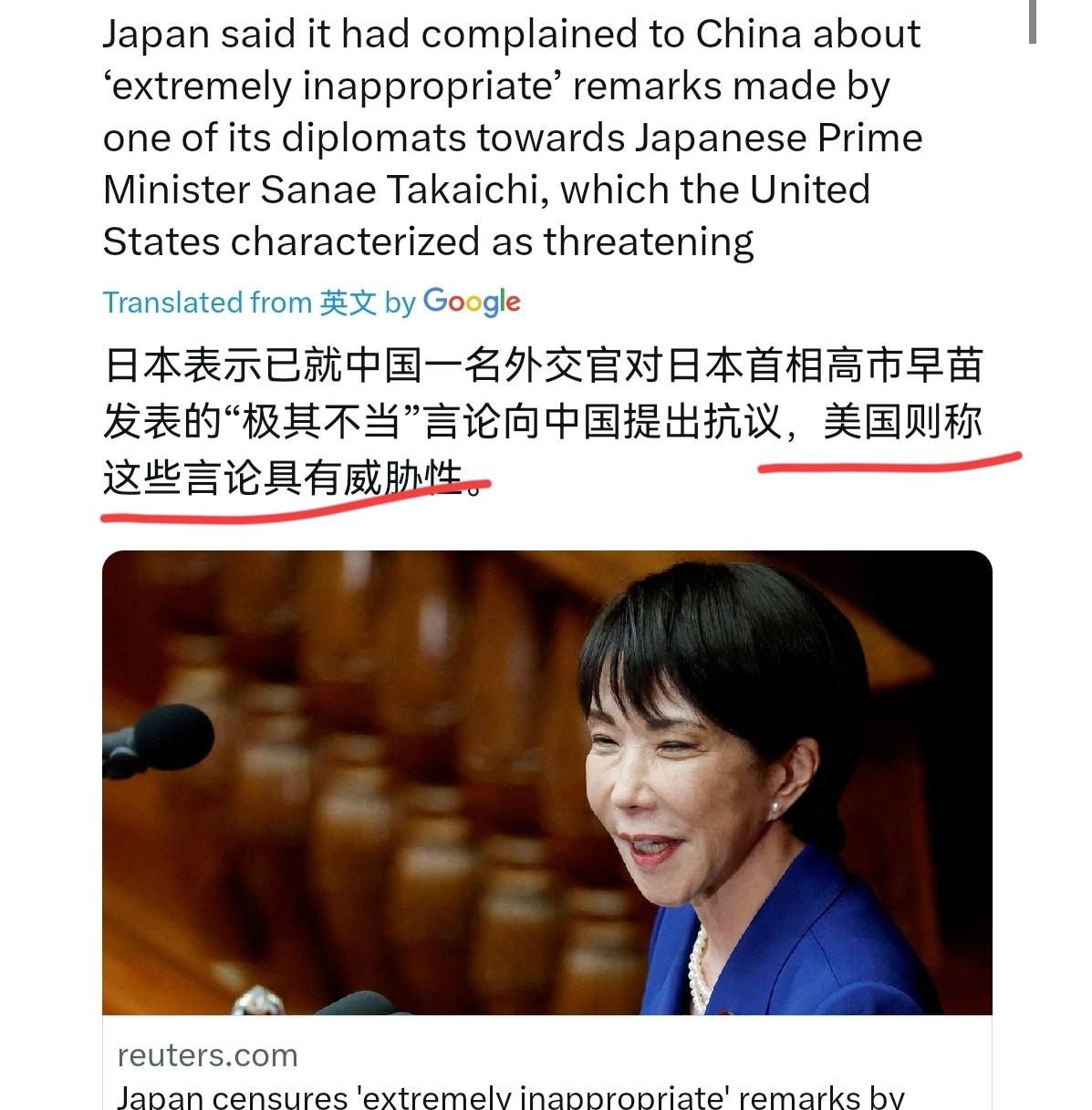 美国驻日大使乔治·格拉斯出来放话了!对于我们外交官的言论,11月10日,美国驻日大使乔治·格拉斯表示,中国驻大阪总领事无疑威胁了高市早苗。中国的面具再次滑落,这样的的言论无疑威胁到了高市和日本人民。很显然,美国驻日本大使无疑是一屁股坐到了日本那一边。 只能说他的这话说得简直像没看前情提要就急着抢戏的群演,所谓 “中国面具滑落” 的论调,压根就是揣着明白装糊涂的刻意抹黑,毕竟要论颠倒黑白、拉偏架,美国在这方面向来是专业级别的。 先不说中国驻大阪总领事的言论到底是怎么回事,得先看看日本首相高市早苗之前干了些什么 —— 这位刚上台十天就玩起 “24 小时变脸” 的戏码,10 月底刚跟中方会晤时还信誓旦旦说要遵守《中日联合声明》里的立场,转头就抱着台当局人员拍照炒作。 甚至在台湾光复 80 周年这个敏感节点,公然在国会叫嚣 “台海有事就是日本存亡危机事态”,放话不排除动用武力介入,这已经不是踩红线,简直是拿着喇叭在红线上蹦迪了。 中国外交官不过是把底线摆出来,怎么到美国大使嘴里就成了 “威胁”?这逻辑跟小偷被抓现行反骂失主手太快没区别。 要说在台湾问题上做文章,美国绝对是当之无愧的 “领头羊”,这点连日本都得排第二。就拿 2024 年 10 月来说,美国五角大楼刚宣布 20 亿美元对台军售,又是导弹系统又是雷达系统,这已经是拜登政府任内第 17 次干这种事了,明摆着就是给 “台独” 势力递刀。 更讽刺的是,美国一边喊着 “维护台海稳定”,一边跟日本搞的联合军演全是冲着台海来的,2024 年 2 月的 “锋刃” 演习直接用真实地图模拟 “台湾有事”,还把剧本定为 “特别秘密”,生怕别人不知道他们在密谋什么。这种 “说一套做一套” 的本事,美国要是称第二,没人敢称第一。 日本能在台湾问题上蹦跶得这么欢,背后全是美国在撑腰放纵,说白了就是美国养的 “打手”,专门用来在亚太给中国添堵。 这些年美国一步步帮日本撕毁 “和平宪法” 的封印,2024 年 4 月美日一下子签了 70 项协议,不仅要建联合司令部让美军直接指挥日本自卫队,还帮日本搞远程打击能力,优先卖 “战斧” 巡航导弹给日本,手把手教怎么改造军舰搭载武器。 有了美国撑腰,日本的防卫预算跟坐了火箭似的涨,2024 年直接突破 8 万亿日元,重点全砸在远程攻击武器上,甚至还制定了台海有事时转移 12 万冲绳居民的计划,这哪是 “自卫”,分明是等着趁火打劫。 美国心里打得算盘精着呢,自己在台湾问题上亲自挑衅还不够,非要把日本绑上战车,通过美日同盟给中国施压。 毕竟让日本冲在前面当 “马前卒”,既能消耗中国精力,又能借日本之手强化在亚太的军事存在,简直是一本万利的买卖。 这些年美国在西太的军事部署全靠日本当跳板,冲绳 70% 的美军设施都压在那里,现在又要建边野古基地,还要让日本的造船厂给美军修军舰,把日本彻底变成自己的 “军事后勤仓库”。 日本也乐意当这个 “跟班”,借着美国的势力搞军事化,妄图重新当地区霸主,只是忘了自己二战战败国的身份,当年以 “存亡危机” 为借口发动侵略的教训还没吸取够,现在又想重蹈覆辙。 美国驻日大使这时候跳出来帮日本说话,说白了就是演给盟友看的 “苦肉计”,既安抚了急着表忠心的日本,又能给自己的遏制战略找个由头。 但这戏演得也太假了,全世界都看得明白,谁才是台海稳定的破坏者,谁才是地区军事化的推手。 美国以为把日本武装起来就能困住中国,却忘了中国的实力早就不是当年,东风导弹的射程能覆盖关岛,075 型两栖攻击舰的投送能力更是今非昔比,真要闹起来,美国的 “岛链封锁” 不过是纸糊的。 日本跟着美国瞎起哄,最后只会引火烧身,毕竟 2024 年日本对台投资额已经降了 70%,市场早就用脚投票了,偏偏政客还在做着 “以台制华” 的美梦。
