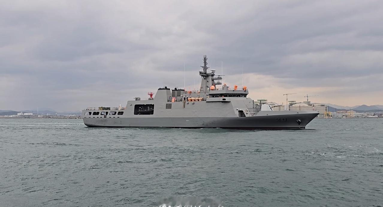 菲律宾海军韩国产近海巡逻舰“拉贾·苏莱曼”号(PS-20)近日在韩国进行海试。 六艘船中的第一艘预计将于明年交付。