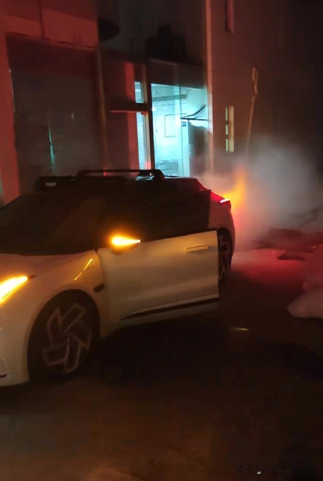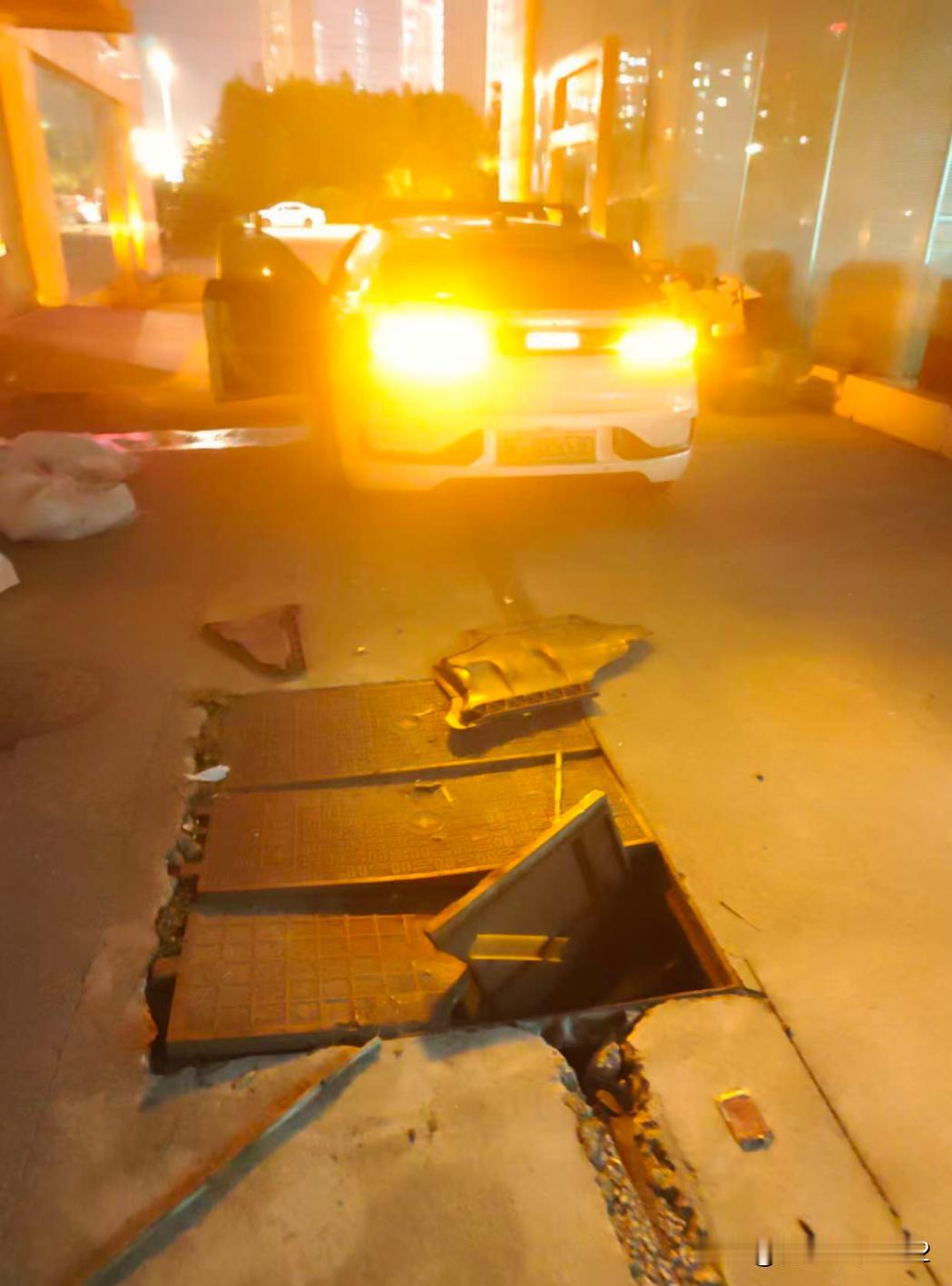 如果电车是SUV的话,有可能会躲过路面压翻的井盖。太倒霉了,冒白烟了
