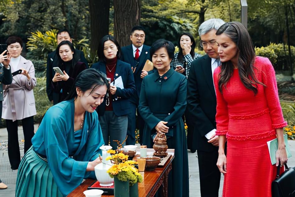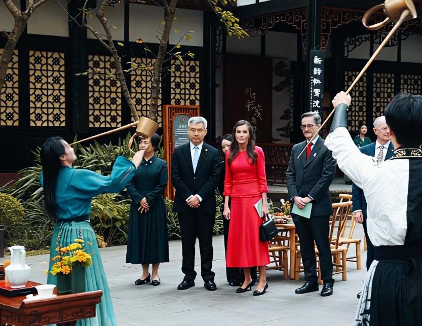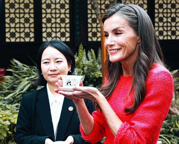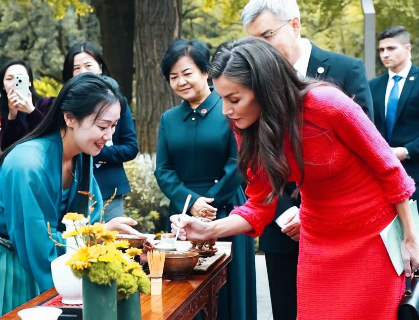 西班牙王后抵达成都后,这是入乡随俗啊! 身着一身红裙,非常的漂亮! 感受中国的特色文化,此行一定会是一次特别之旅!