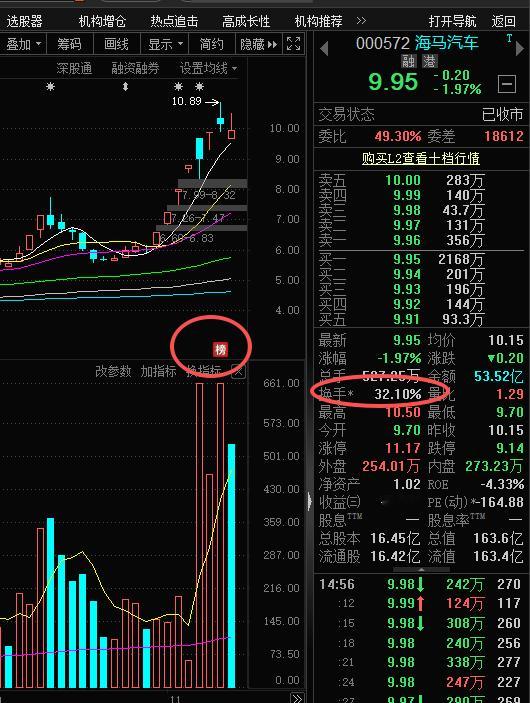 高达30%以上的换手率,海马还没有大跌,没有上龙虎榜,就是主力在左手倒右手,控盘洗昨天追进去的散户而已。