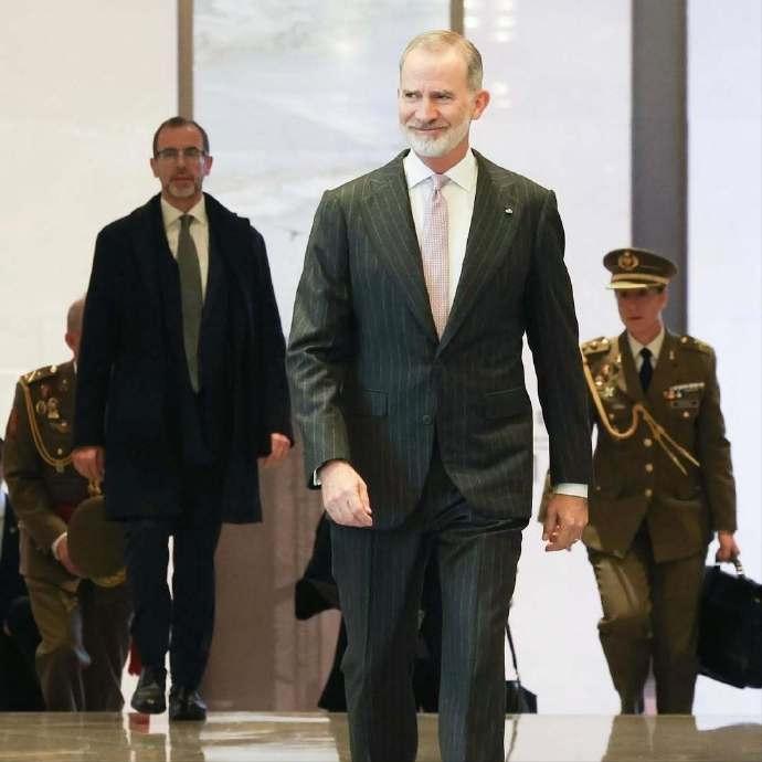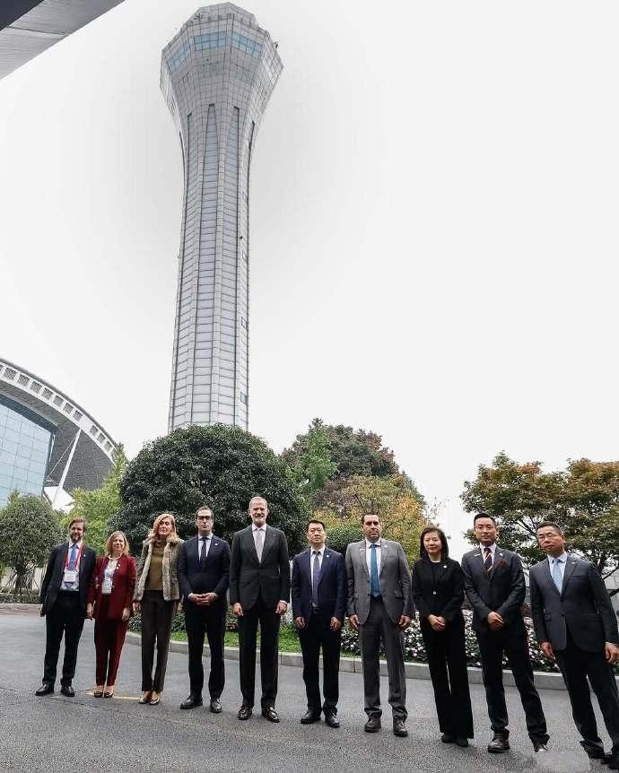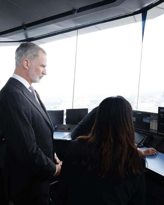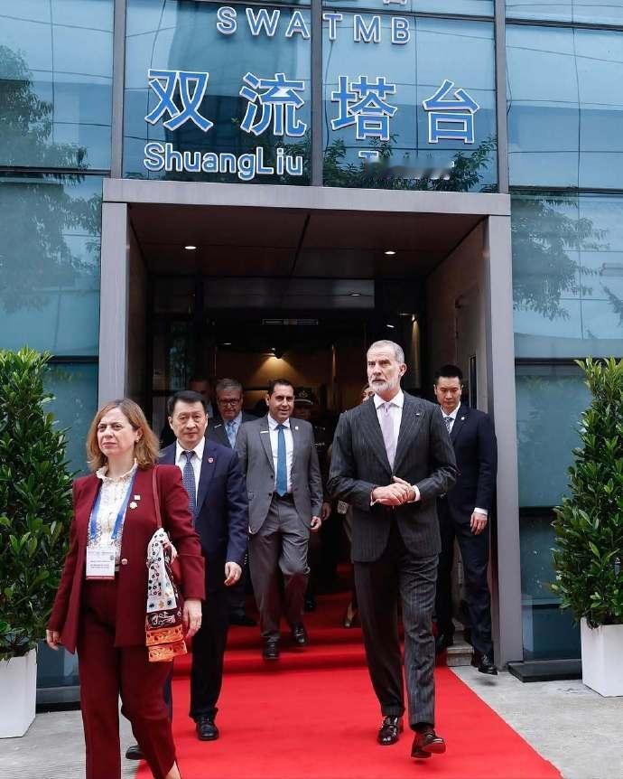 11月11日,西班牙国王在成都参观双流塔台。 画面中,西班牙费利佩国王去参观了成都双流国际机场的双流塔台,画面中,费利佩国王穿的和来的时候几乎没有任何变化,看造型还是来时候的那套西装,唯一变化的就是他的领带换成了粉色领带看起来非常清新。另外他还穿了一双棕色的皮鞋。一米九多的费利佩国王真的是很帅气。 除此之外,西班牙国王还盛美利亚酒店出席了“中国-西班牙商务论坛”开幕式,并在开幕式致辞。随后西班牙国王和王后在这个酒店就餐。 不得不说西班牙国王和王后时间安排的非常紧迫,下午他们还要飞往北京。继续对北京访问。