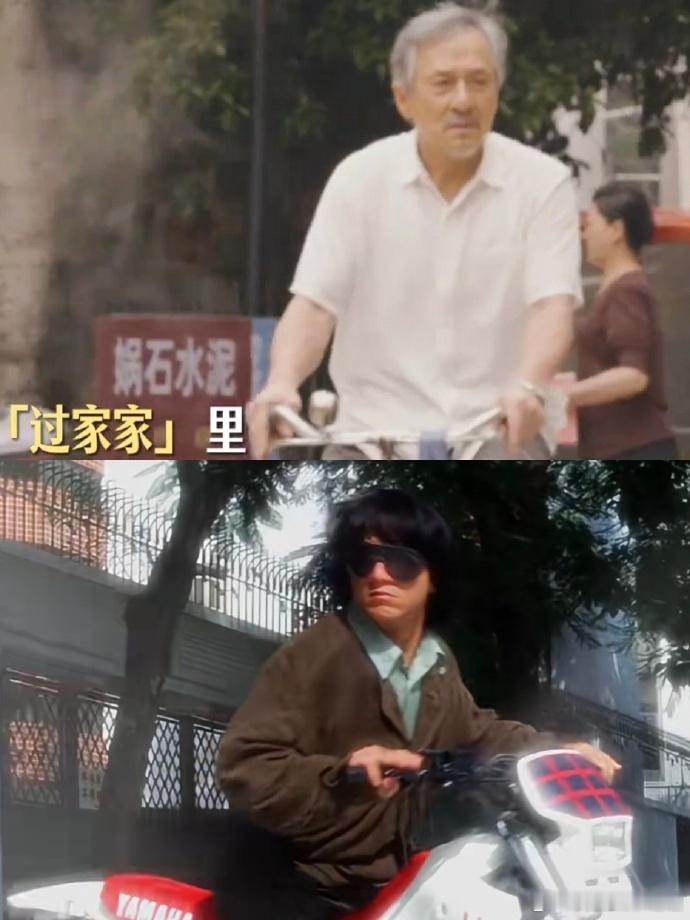 看《过家家》花絮时反复确认!成龙骑车出现的瞬间真没敢认,想起他年轻时的玩命打戏,再看如今银幕上的悠然模样,时光过得太快了。