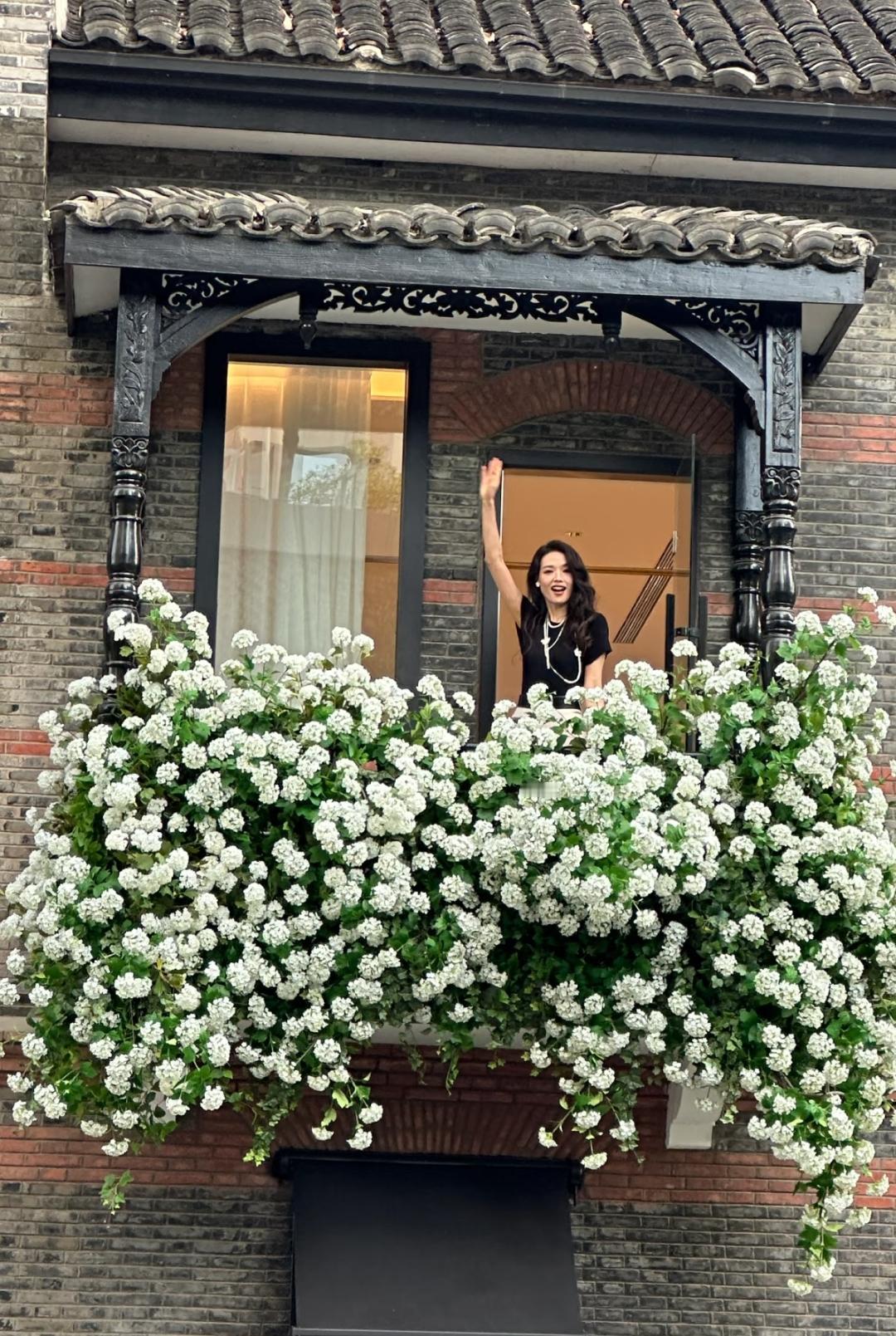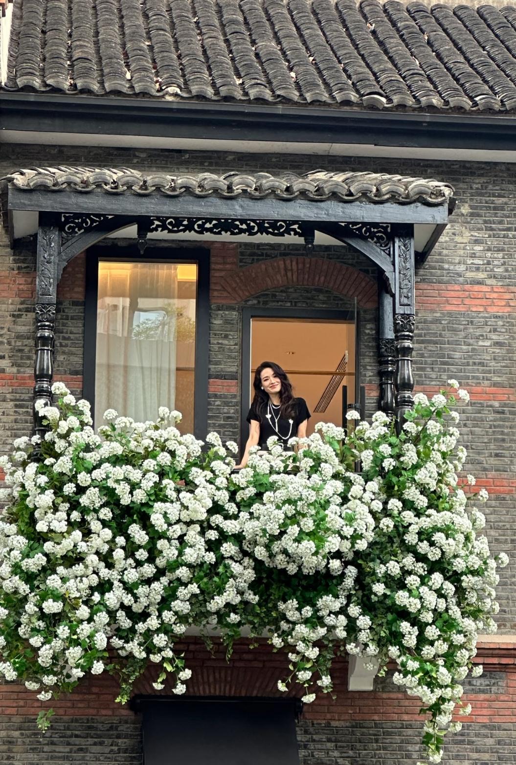撞见舒淇藏在满墙白花里挥手的瞬间,直接魂穿偶像剧名场面!老洋房的雕花阳台裹满了簇