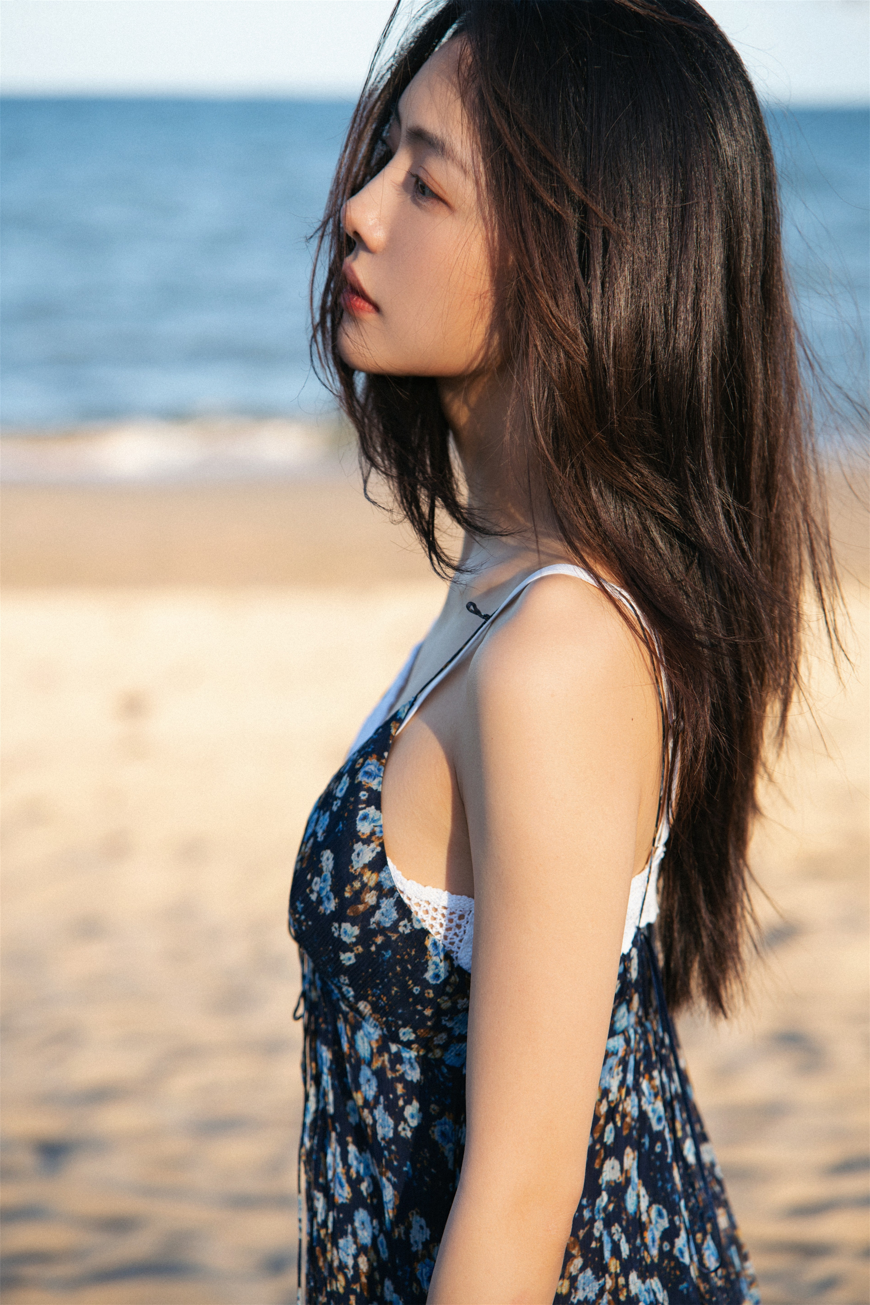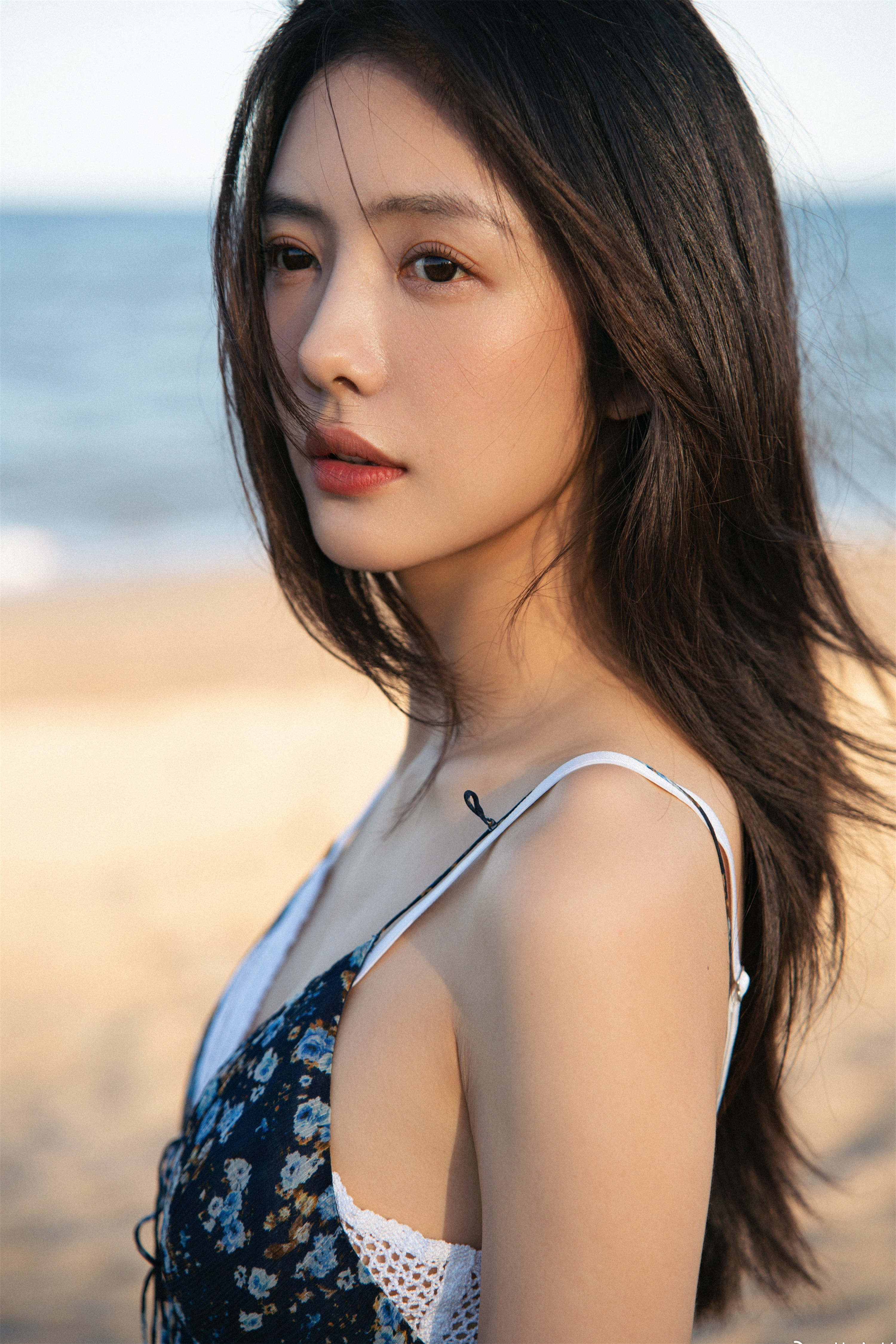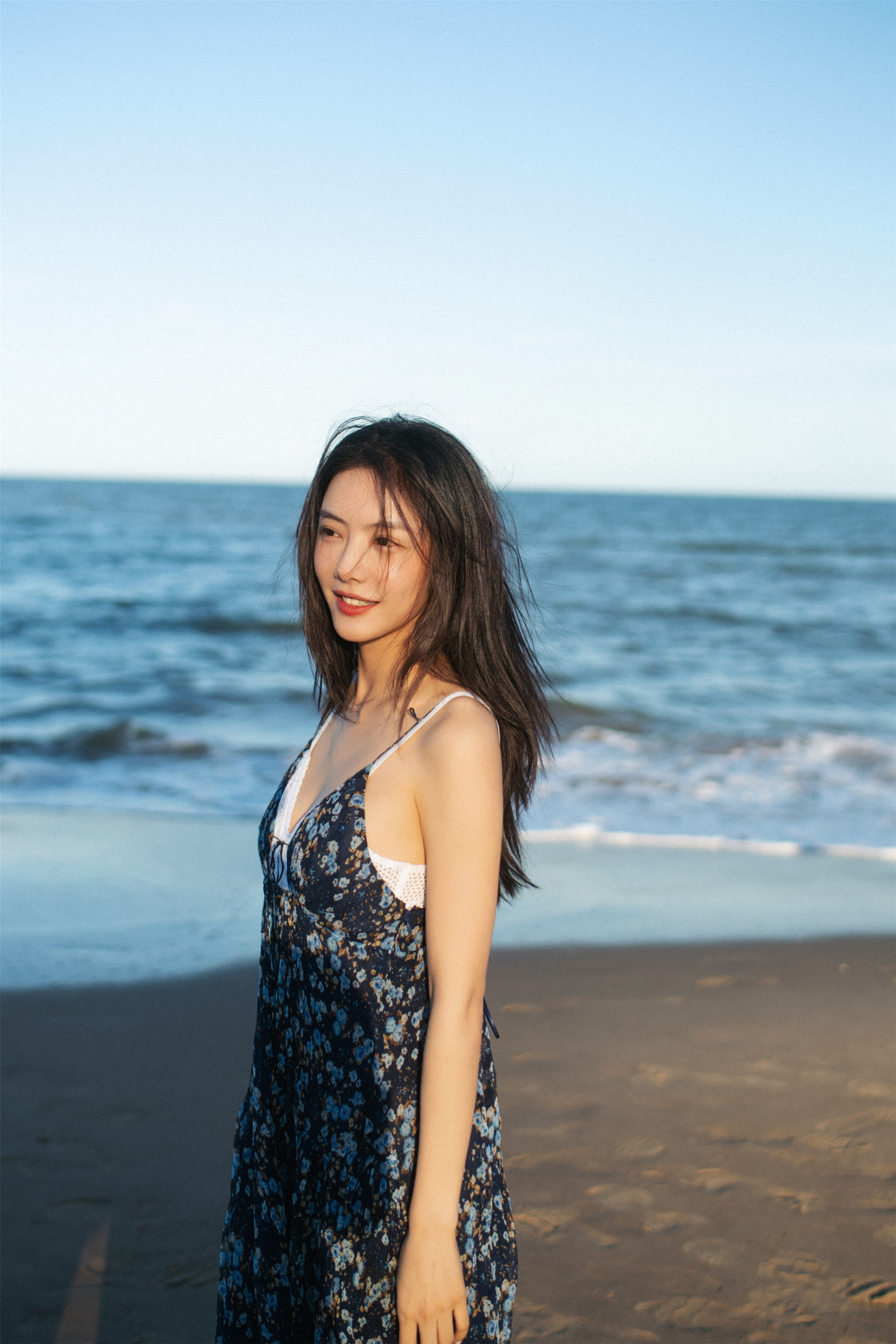 蔡文静,海边吊带碎花裙,秋日氛围感满满